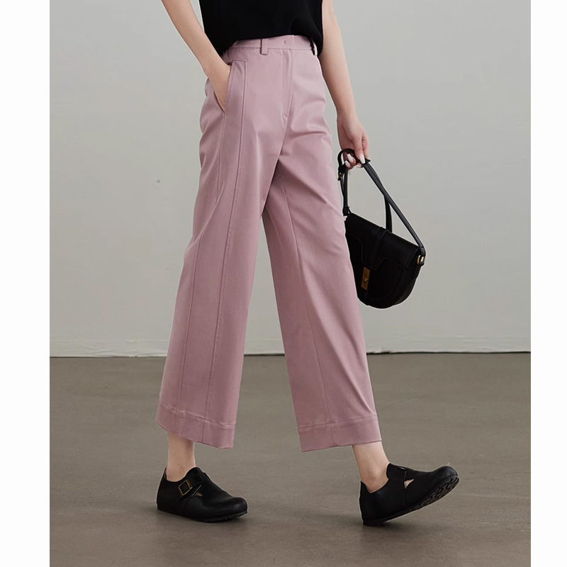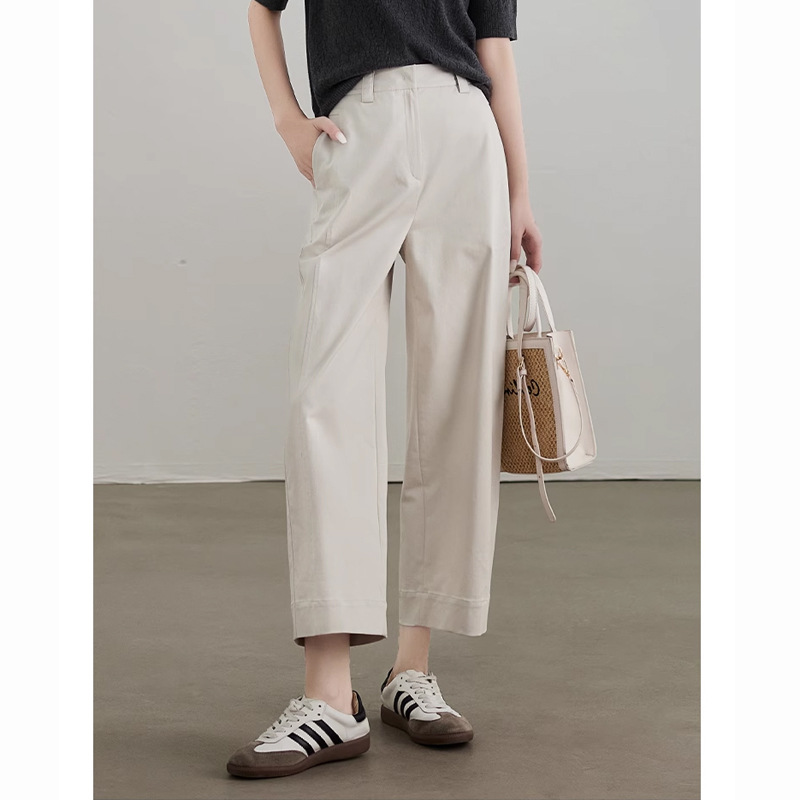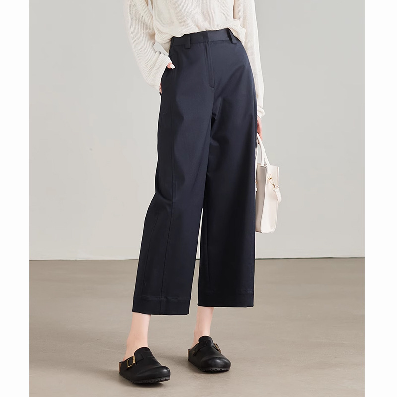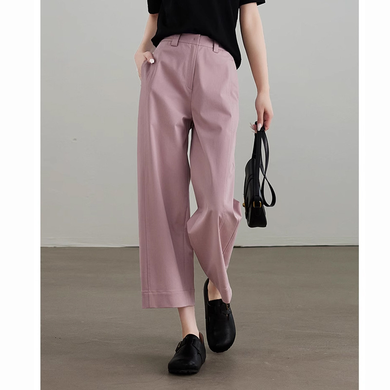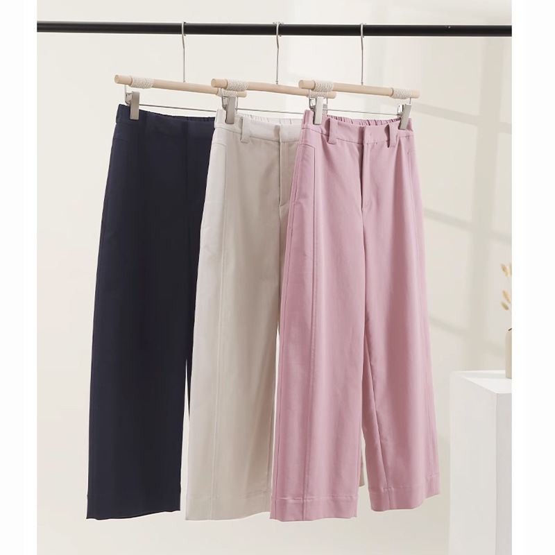 2025 봄 새로운 패션 캐주얼 느슨한 슬리밍 반 탄성 허리 통근 자른 넓은 다리 바지 여성 디자인 센스 트렌디스토어 가기