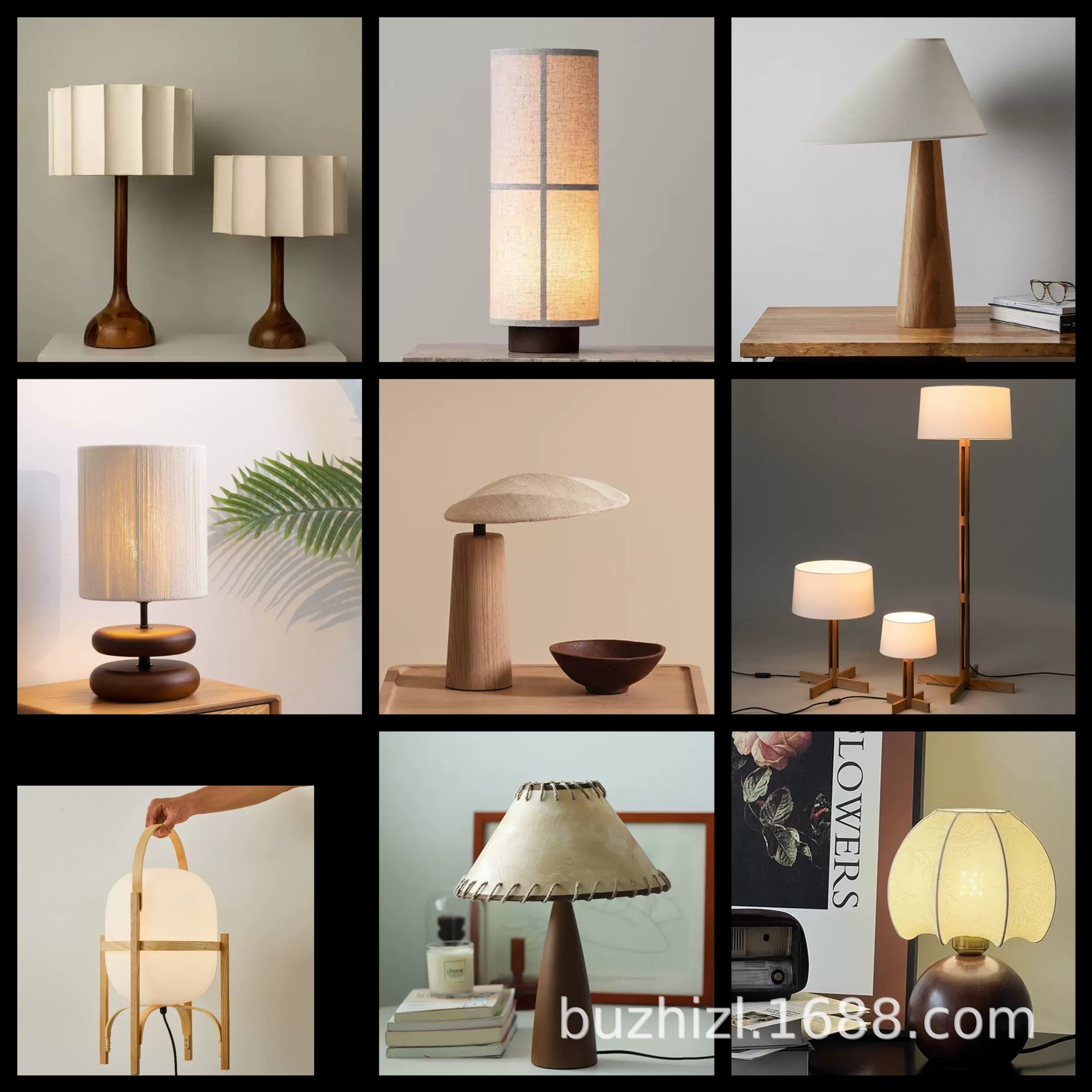 중간 고대 단단한 나무 테이블 램프 새로운 중국 스타일 디자이너 침대 옆 테이블 램프 빈티지 모델 룸 헝겊 커버 장식 나무 램프스토어 가기