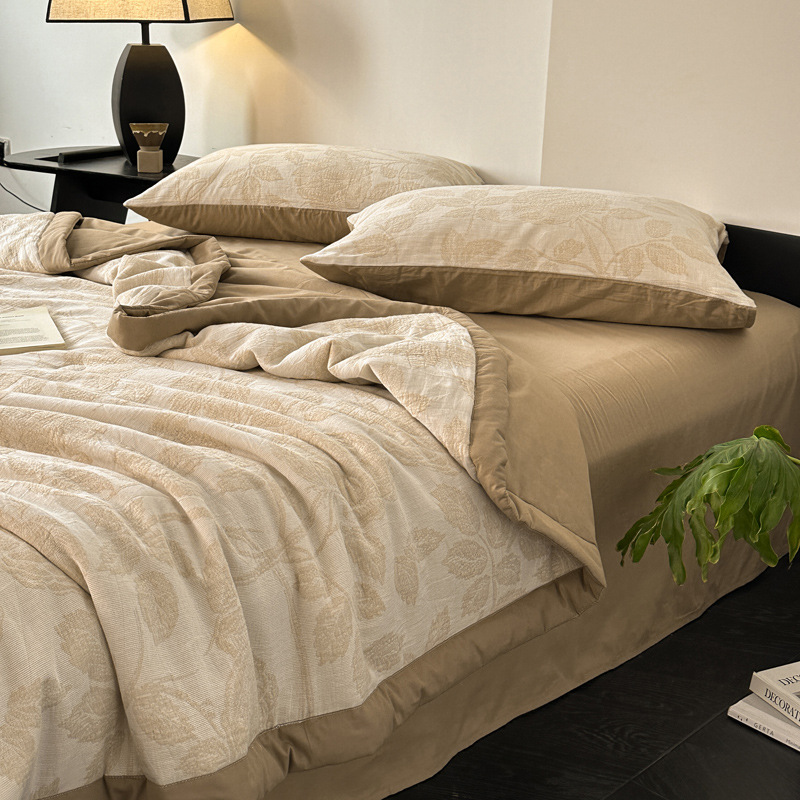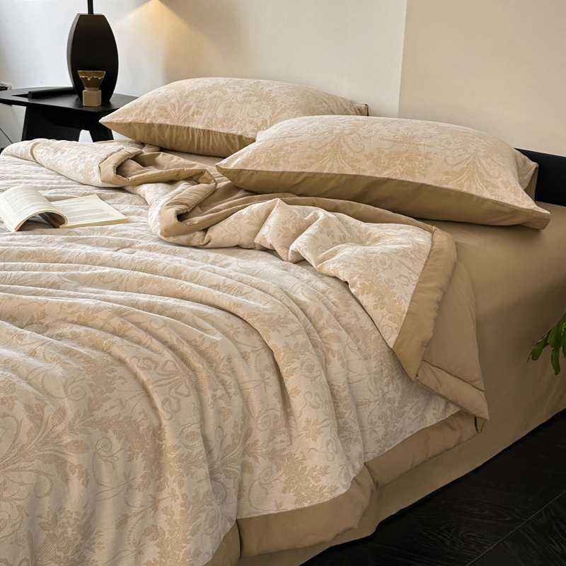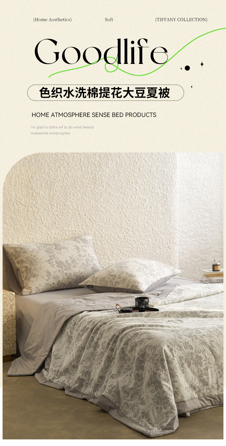 60S 면 더블 레이어 원사 자카드 여름 퀼트 여름 클래스 콩 에어컨 이불 단일 기계 세탁기 순수 코튼 여름 쿨 퀼트