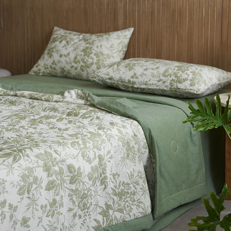 • K 깃털잎-그린 [면 자카드, 부드럽고 피부 친화적]