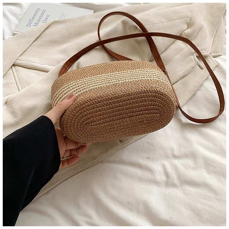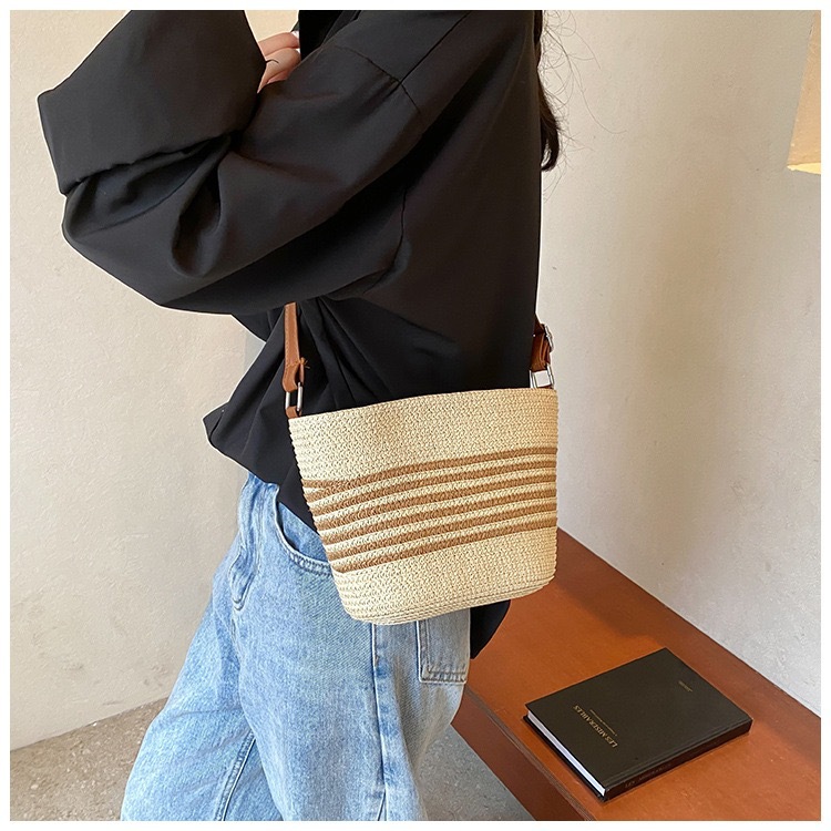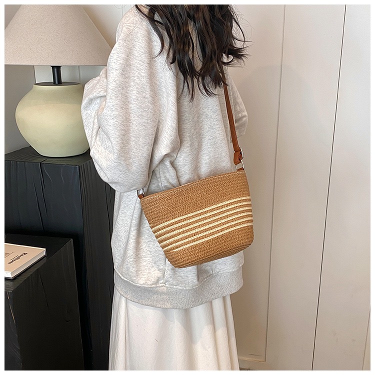 작은 가방 여성의 2025 새로운 패션 캐주얼 어깨 크로스 바디 백 하이 엔드 여성의 세련된 밀짚 버킷 백스토어 가기
