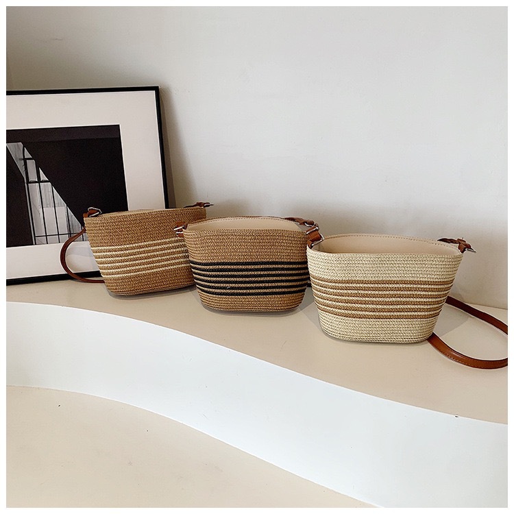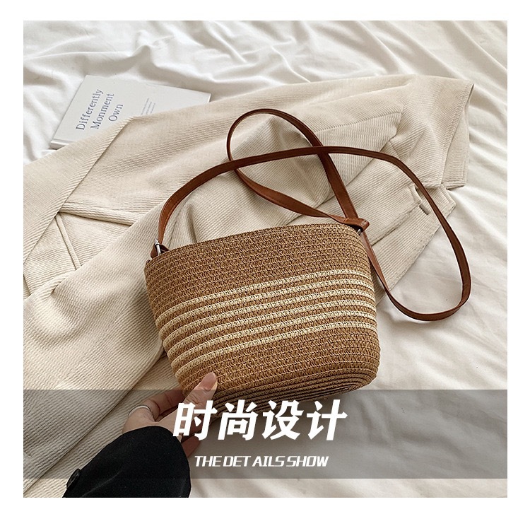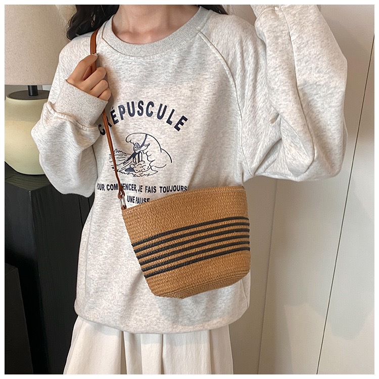 작은 가방 여성의 2025 새로운 패션 캐주얼 어깨 크로스 바디 백 하이 엔드 여성의 세련된 밀짚 버킷 백