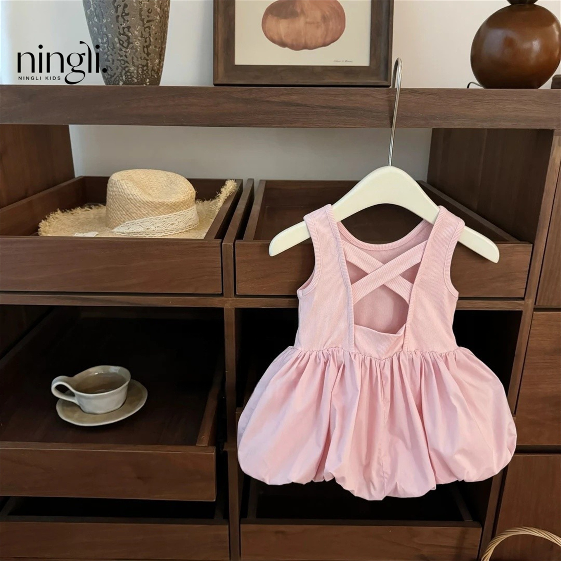 라임 소녀의 슬립 스커트 여름 원피스 소녀의 유행 컬러 매칭 웨이브 포인트 넥 스커트 세련된 어린이 원피스