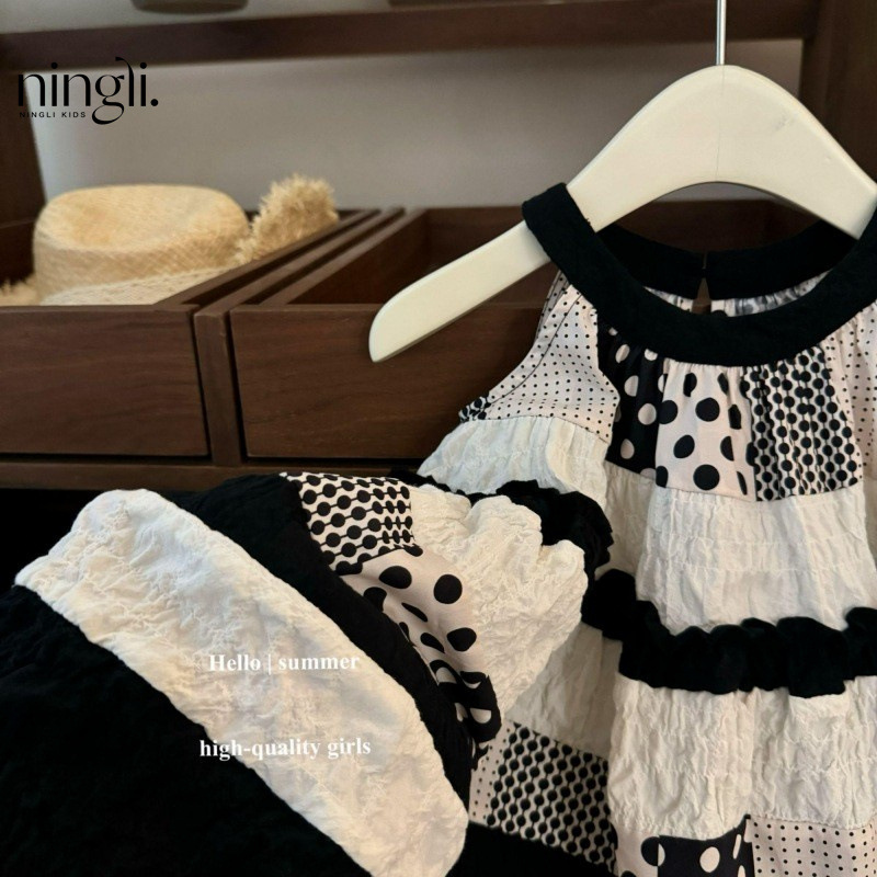 라임 소녀의 슬립 스커트 여름 원피스 소녀의 유행 컬러 매칭 웨이브 포인트 넥 스커트 세련된 어린이 원피스스토어 가기