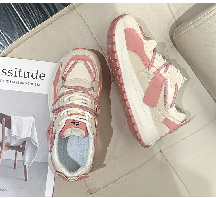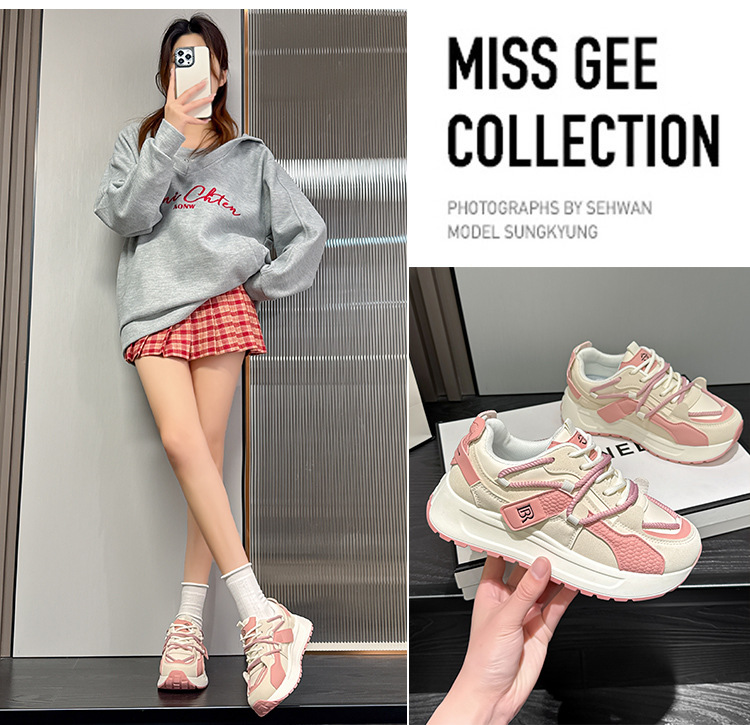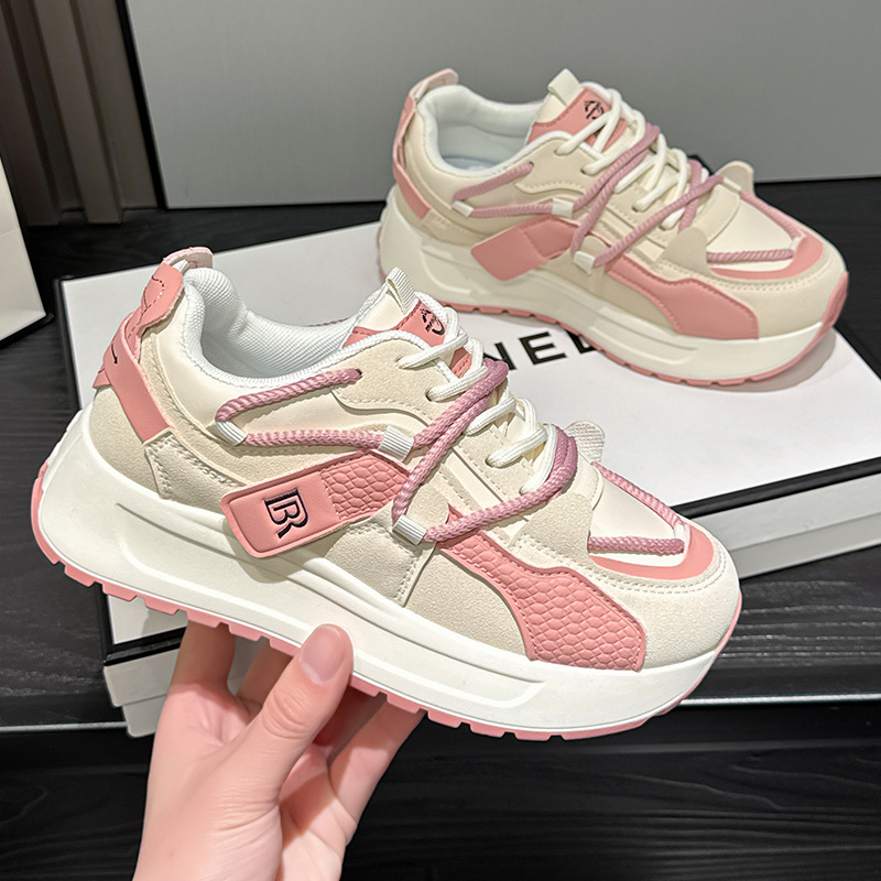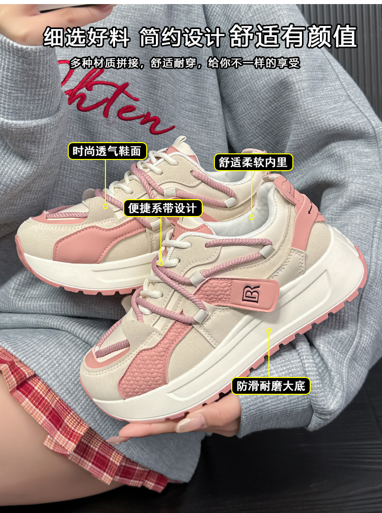 2025 봄 여름 신상 여성용 메쉬 통기성 운동화, 두꺼운 밑창 한국식 다용도 캐주얼 아빠 신발, 심플하고 패셔너블스토어 가기