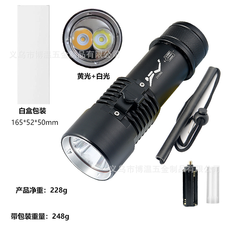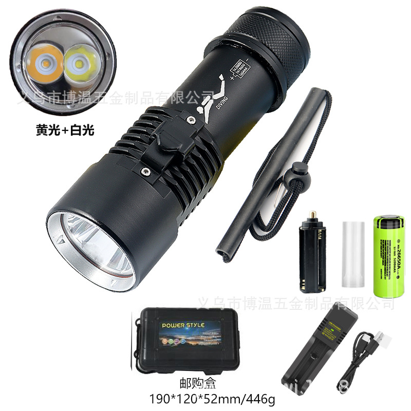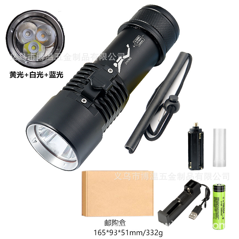 标准配件:手电筒、手绳、26650转换套管、AAA电池支架、白盒