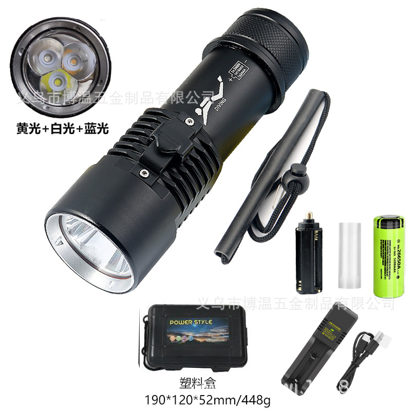 灯杯类型:光杯定焦 电池规格:1节26650电池/1节18650电池/3节AAA电池(不含电池)