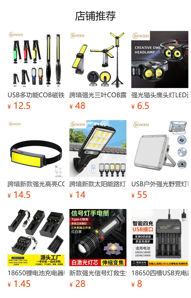 产品档位:强光、弱光、爆闪、长按4秒SOS