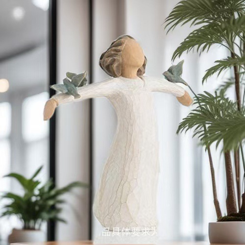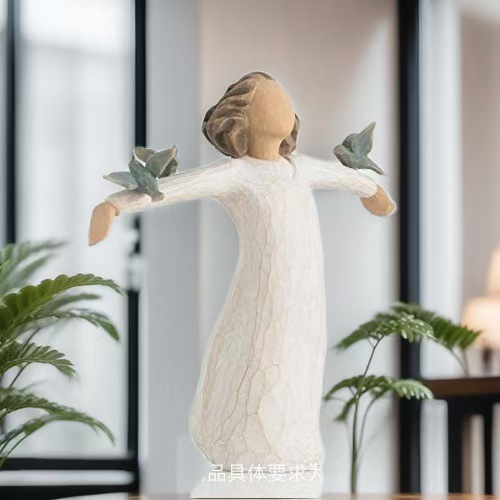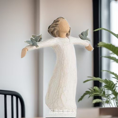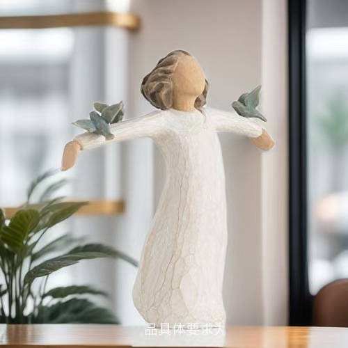 비둘기 조각품을 들고 국경 간 소녀 평화 자유 수지 장식품 홈 장식 수지 공예 장식품스토어 가기