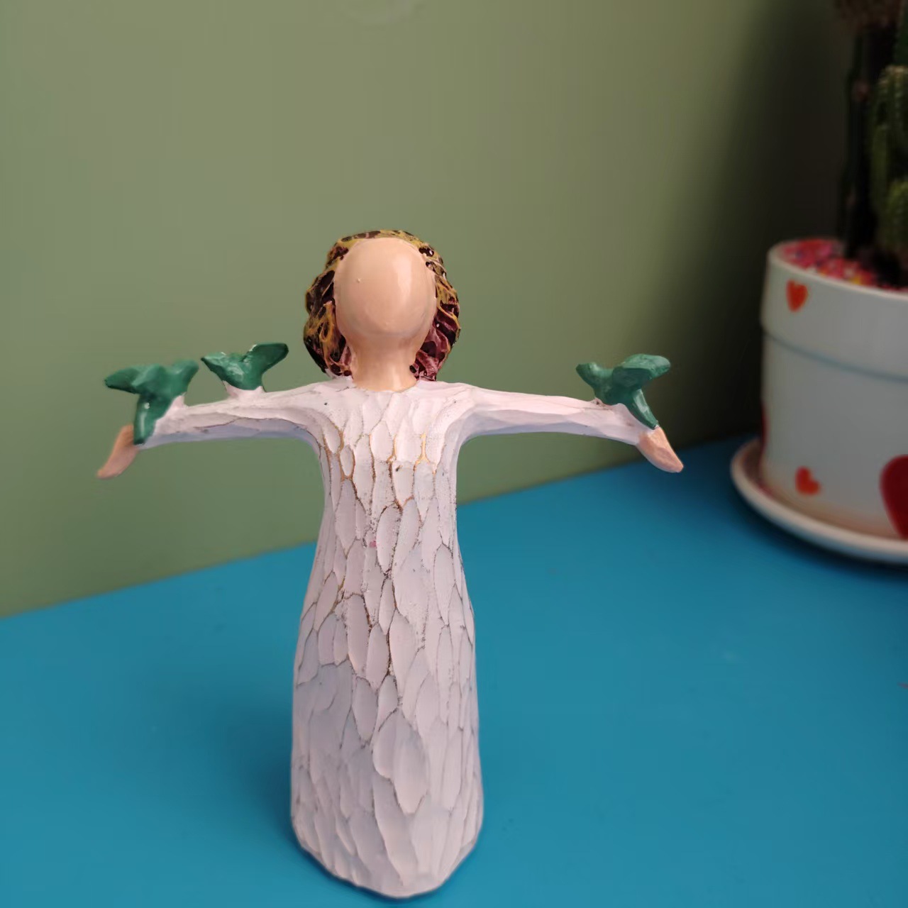 비둘기 조각품을 들고 국경 간 소녀 평화 자유 수지 장식품 홈 장식 수지 공예 장식품