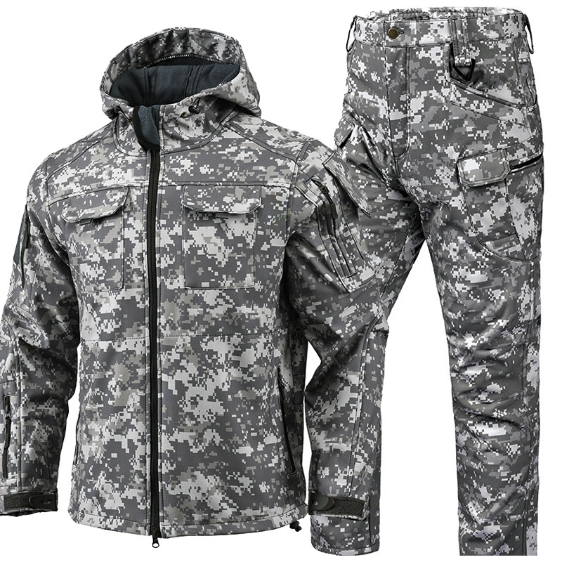 비틀 상어 피부 소프트 쉘 재킷 세트 위장 재킷 방수 군사 팬 재킷 따뜻한 세트