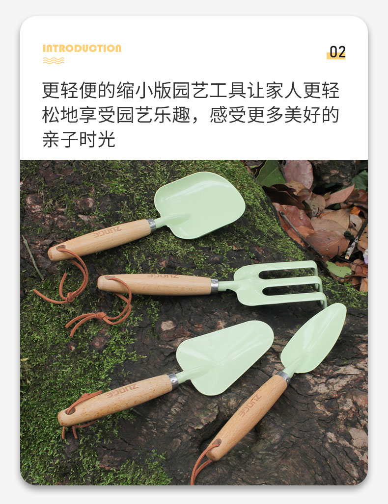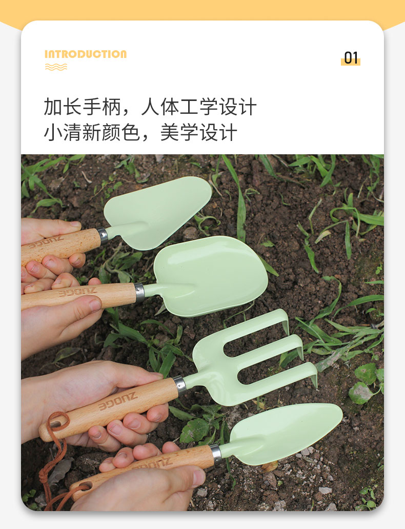 • [너도밤나무 손잡이가 확장된 과일그린 4피스 삽 세트]