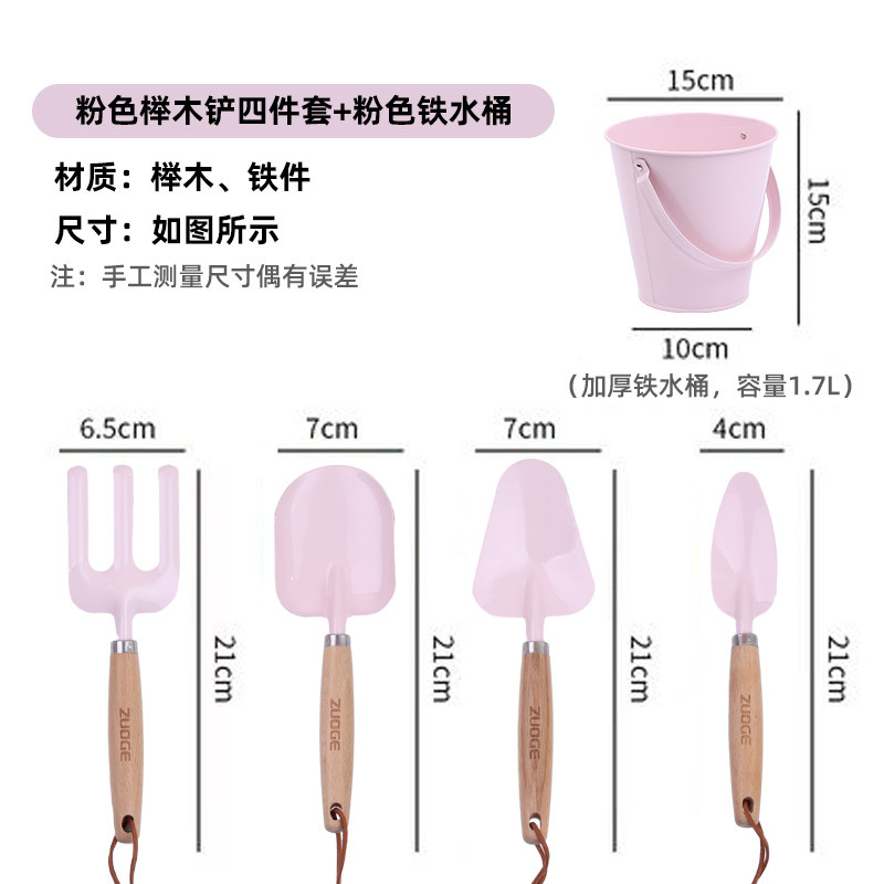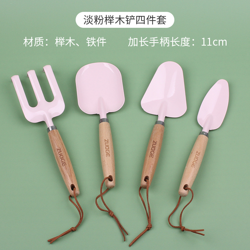 • [라이트 핑크 4피스 삽 세트] 확장된 너도밤나무 손잡이