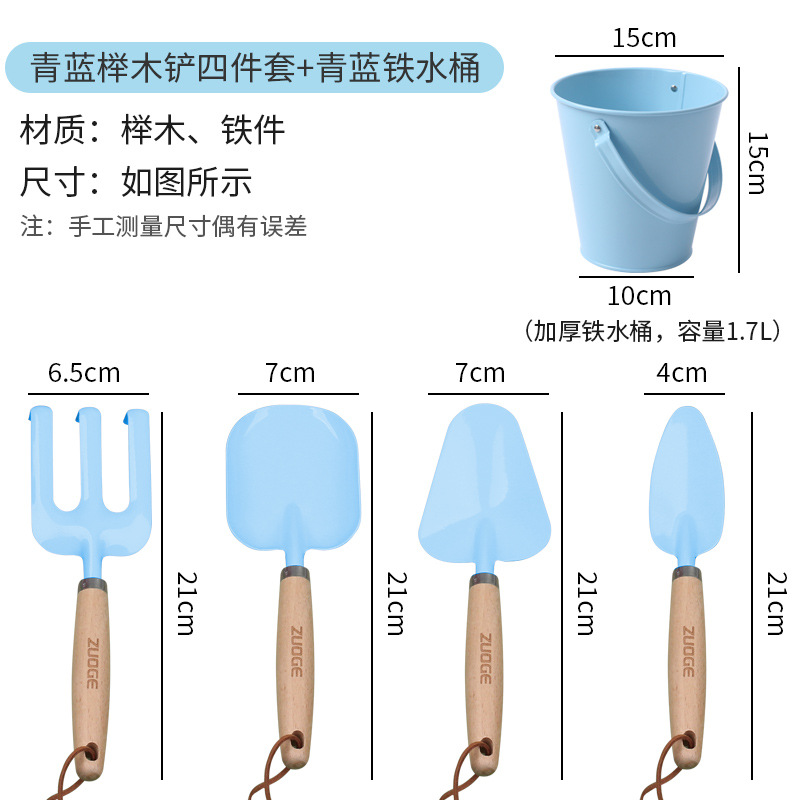 • [청록색 4피스 삽 세트] 확장된 너도밤나무 손잡이