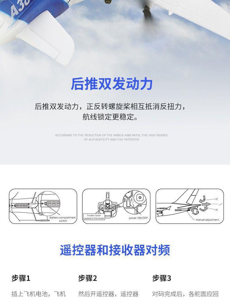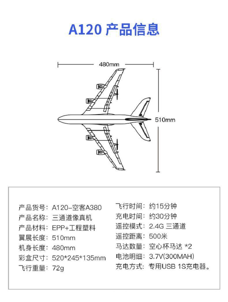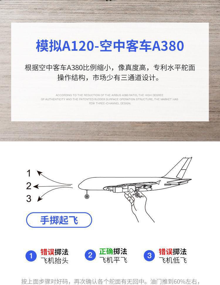A120 원격 제어 비행기 모델 3 채널 글라이더 에어 버스 A380 고정 날개 모델 비행기 장난감 비행기 글라이더스토어 가기