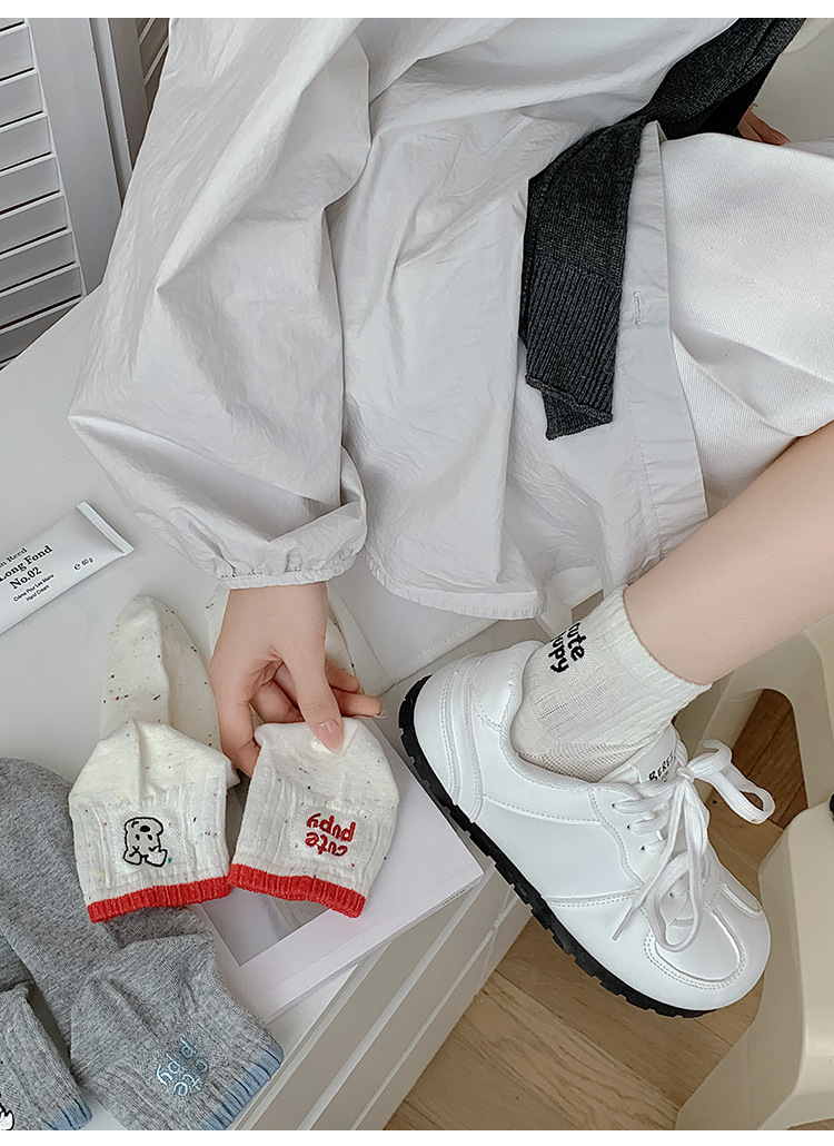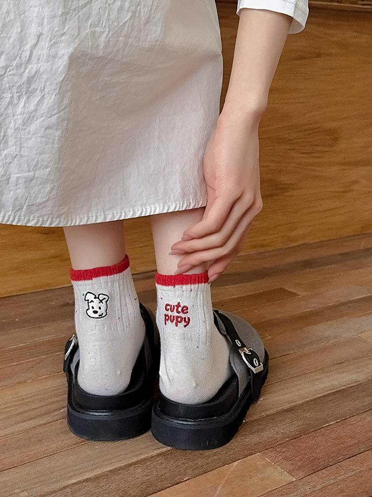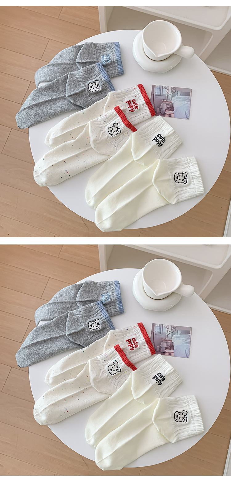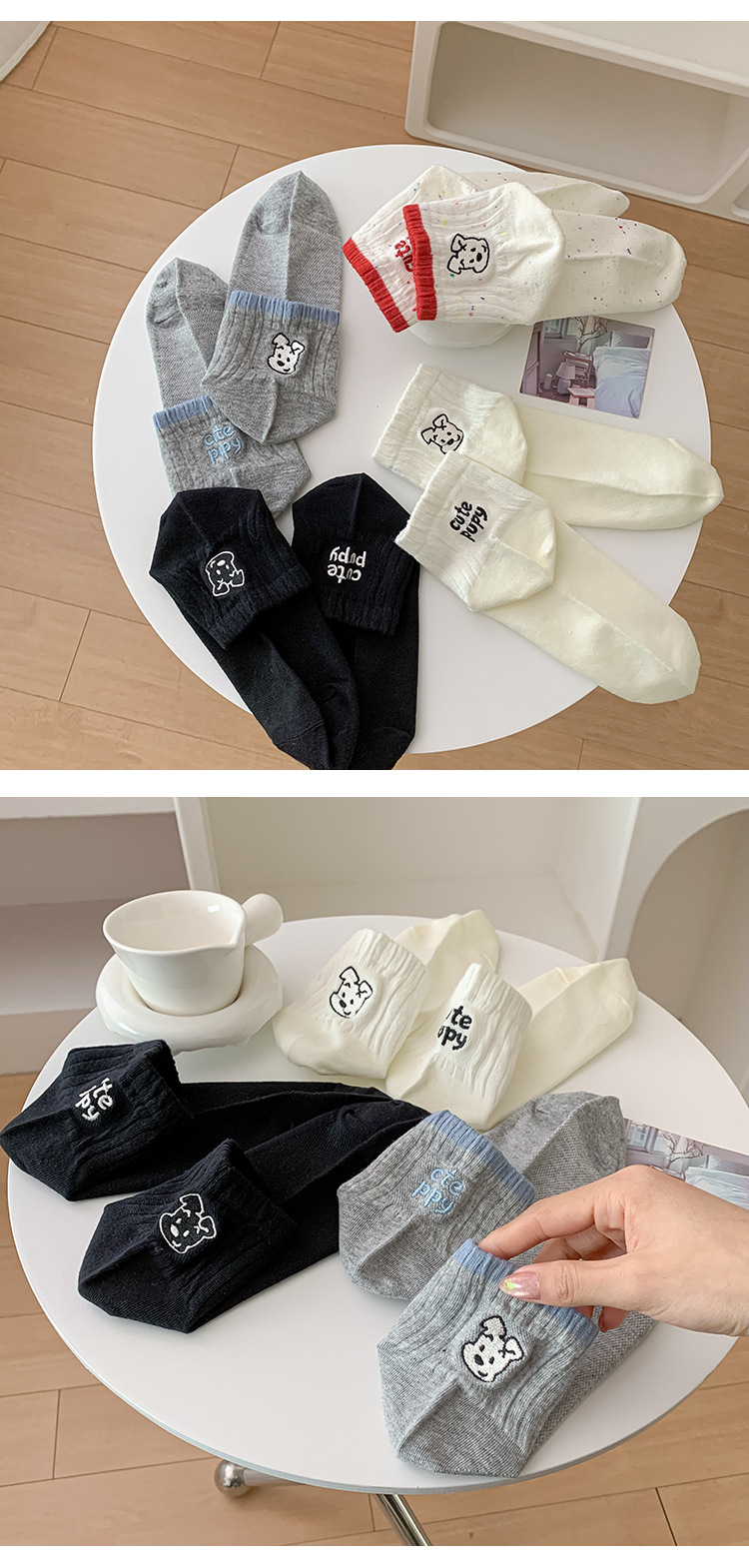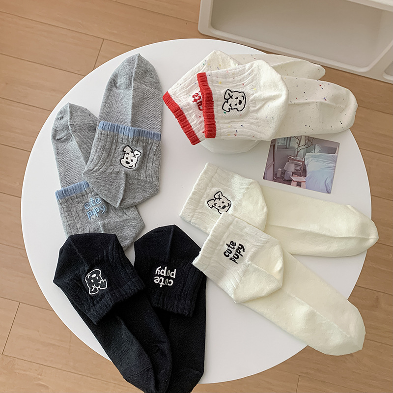 봄과 여름 얇은 메쉬 통기성 짧은 양말 여성의 일본 귀여운 만화 강아지 낮은 허리 모든 경기 짧은 양말
