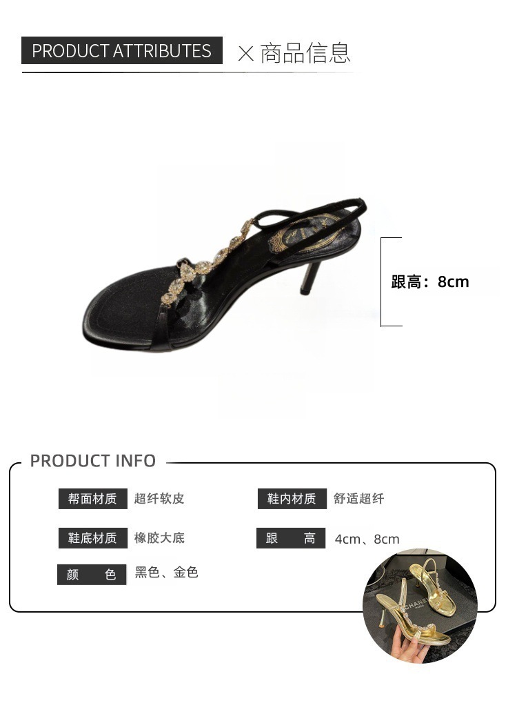 여성용 슬림 힐 샌들 2025 이른 봄 새로운 오픈 토 라인스톤 섹시한 연예인 골드 백 스트랩 하이힐스토어 가기