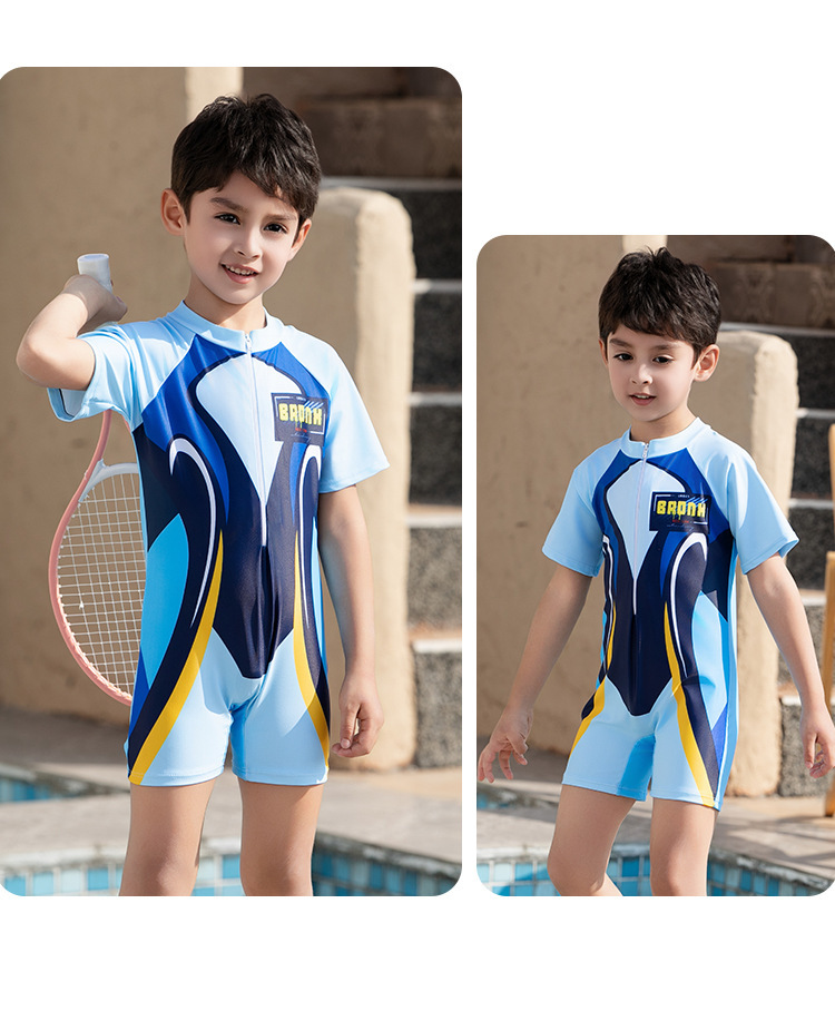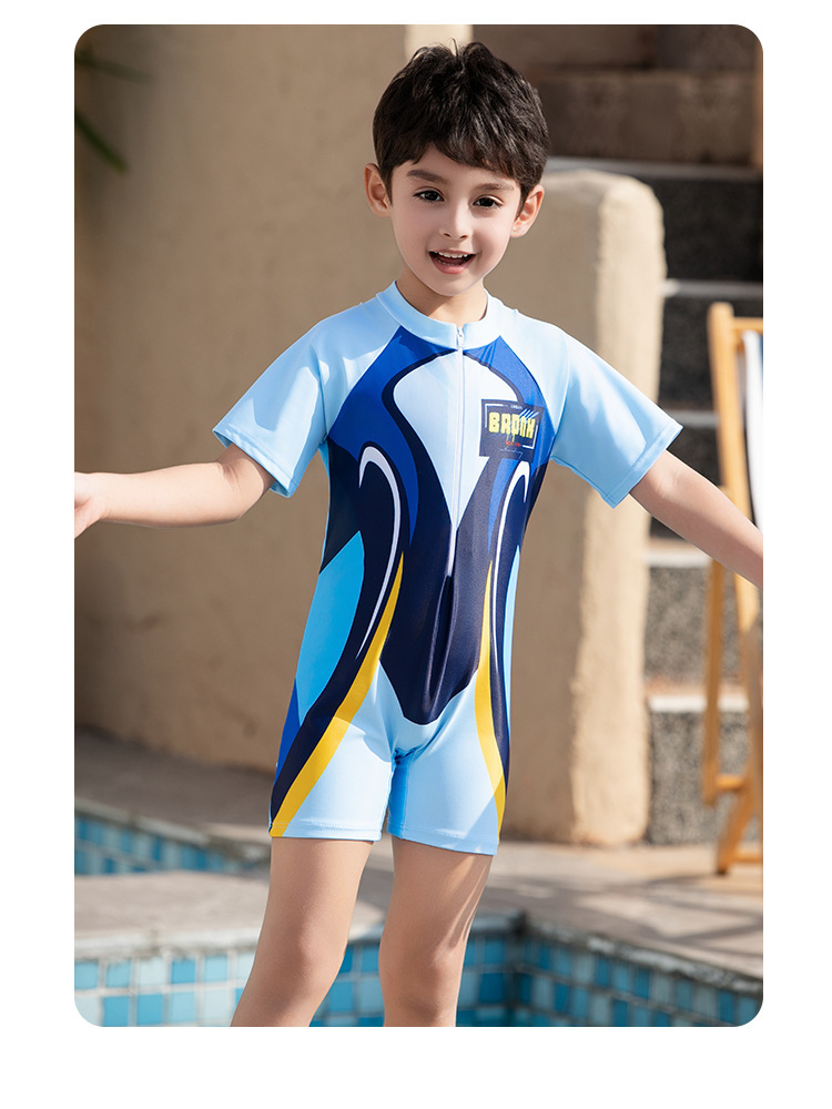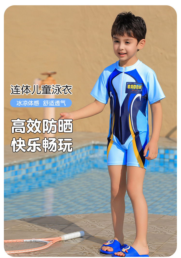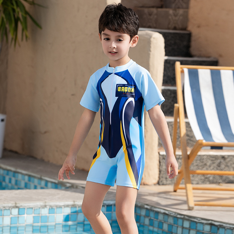 크로스보더 소년 수영복 반팔 원피스 복서 팬티 대형, 중형 및 소형 어린이 자외선 차단제 속건성 온천 만화 어린이 수영복스토어 가기