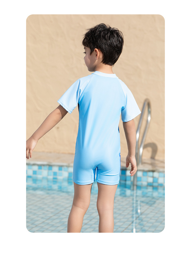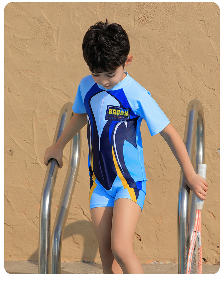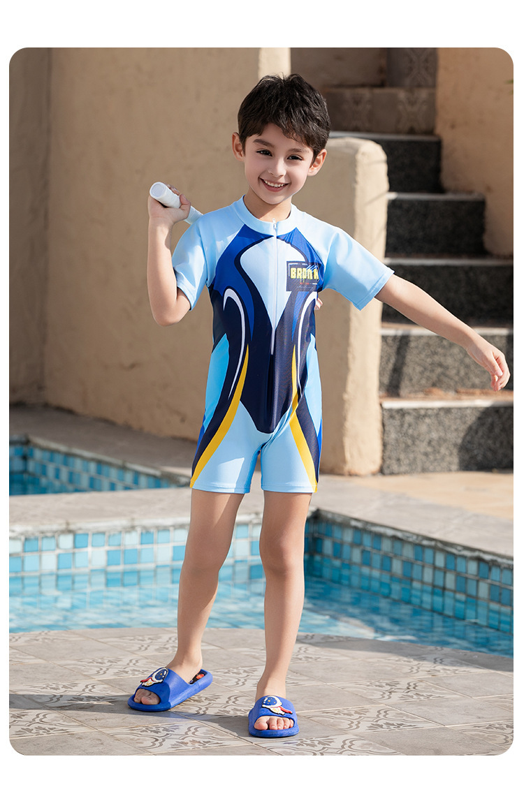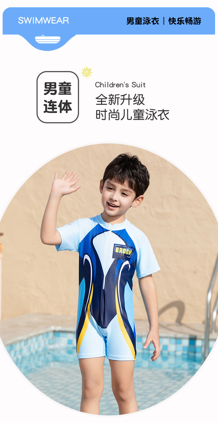 크로스보더 소년 수영복 반팔 원피스 복서 팬티 대형, 중형 및 소형 어린이 자외선 차단제 속건성 온천 만화 어린이 수영복스토어 가기