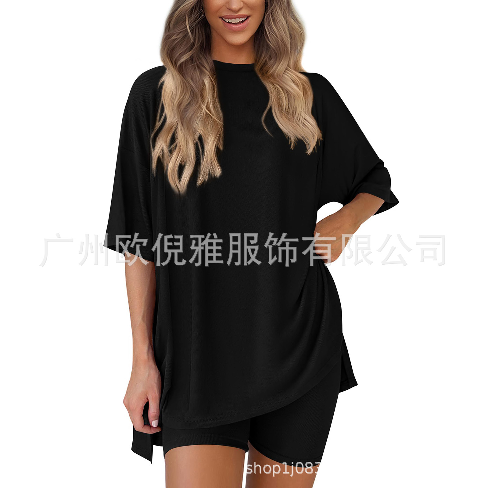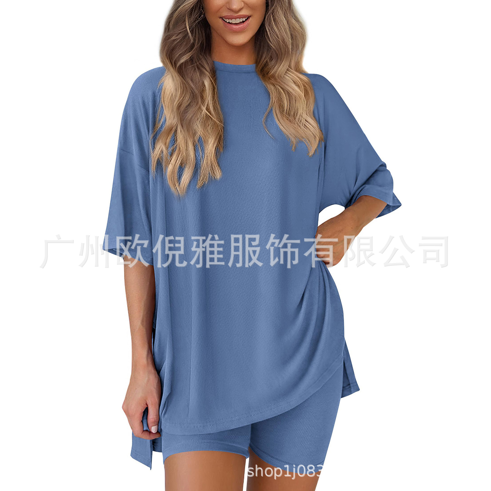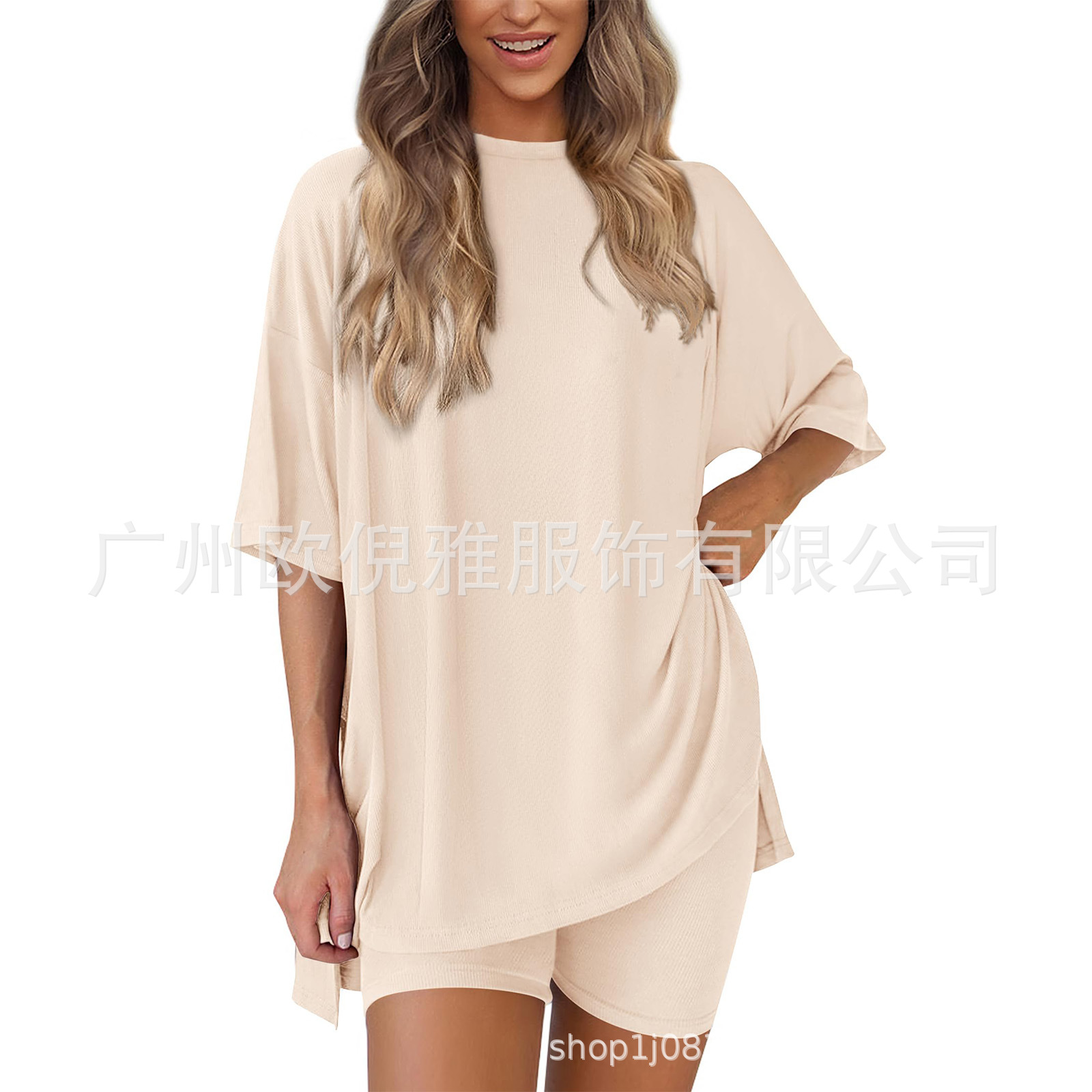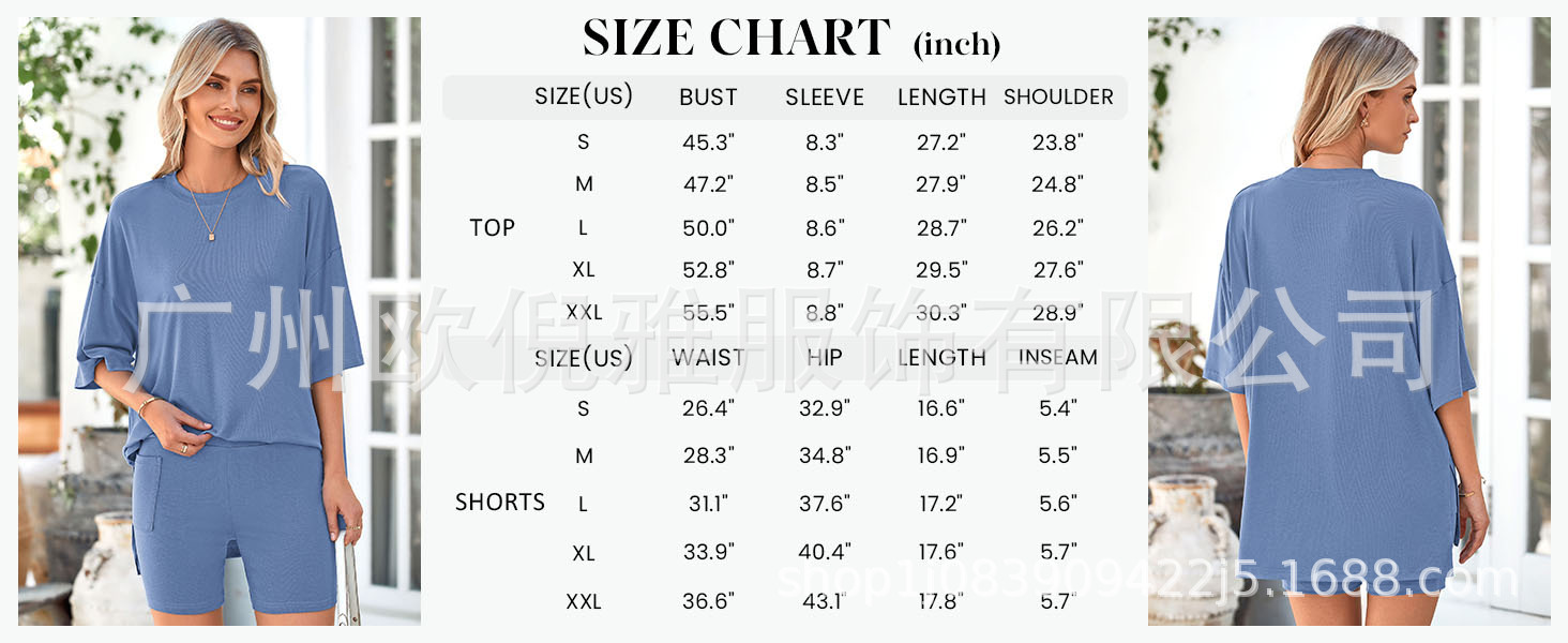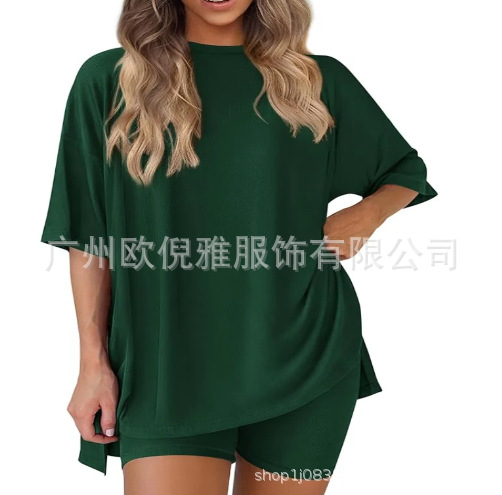 2025 봄 여름 신상품 크로스보더 루즈핏 대형 여성복 유럽 및 미국 패션 캐주얼 홈웨어 반팔 티셔츠 반바지스토어 가기