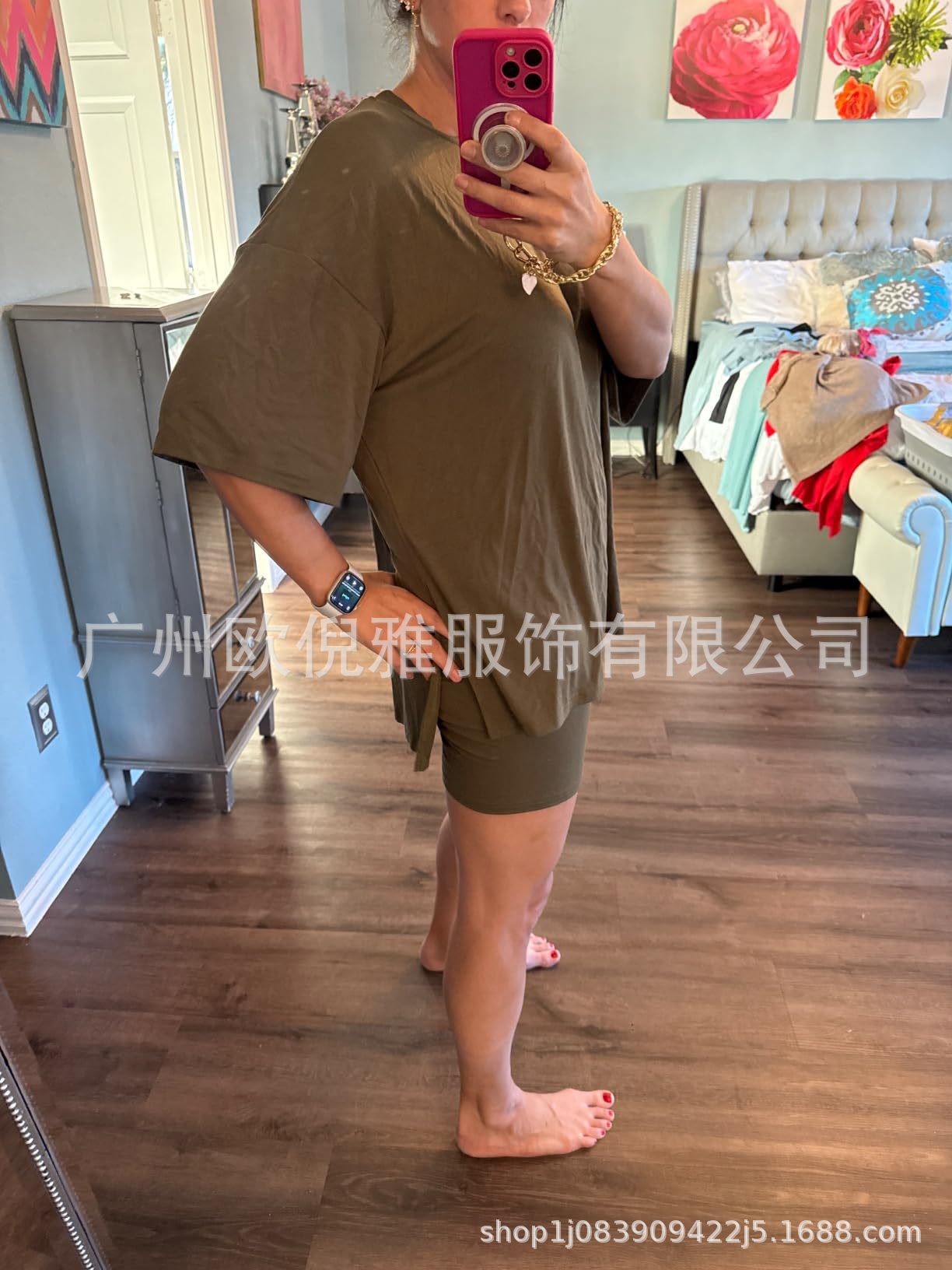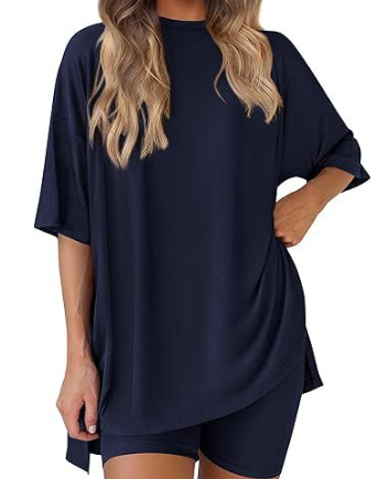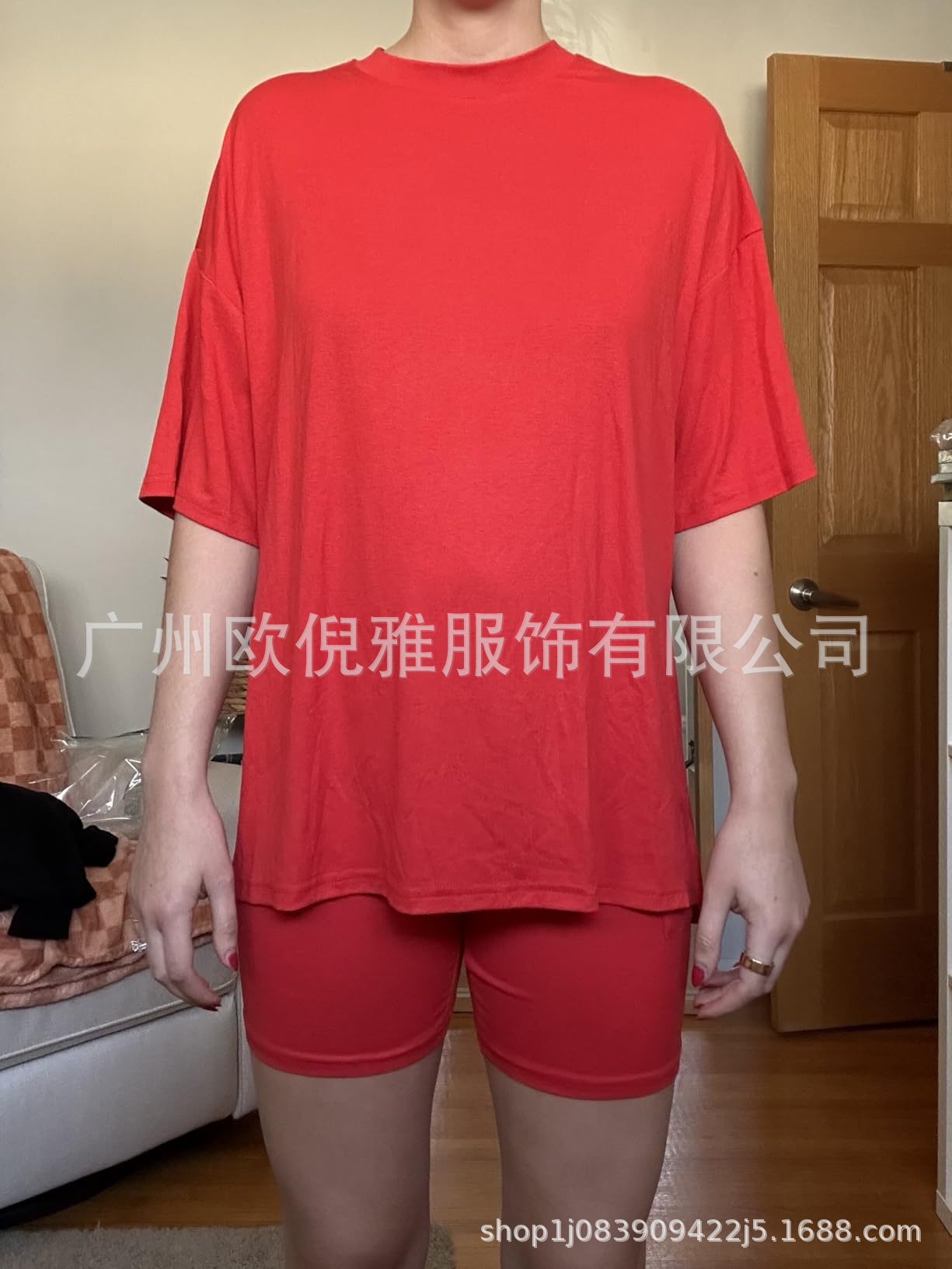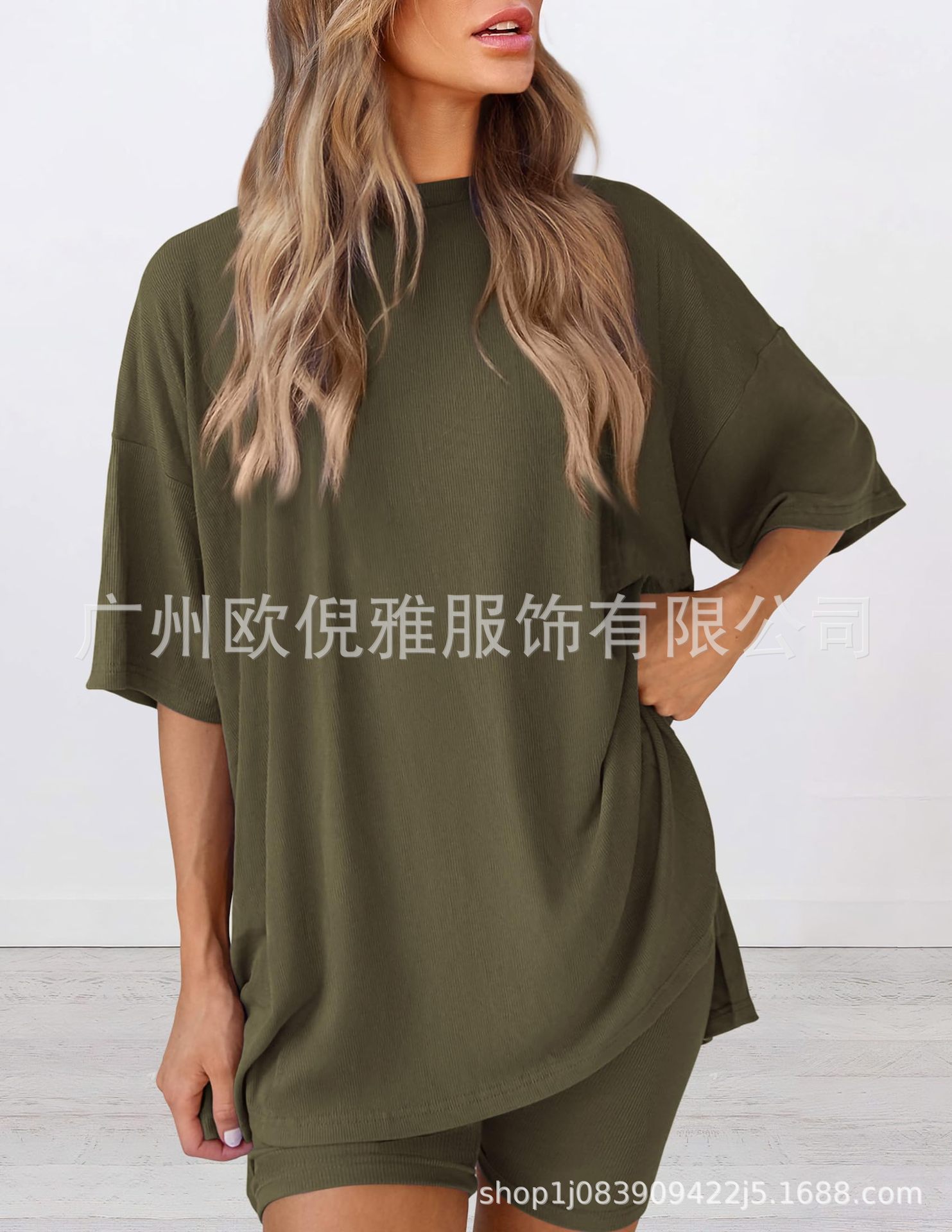 2025 봄 여름 신상품 크로스보더 루즈핏 대형 여성복 유럽 및 미국 패션 캐주얼 홈웨어 반팔 티셔츠 반바지스토어 가기