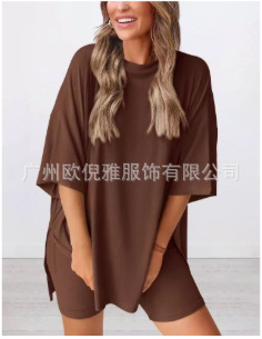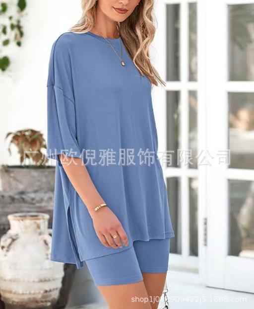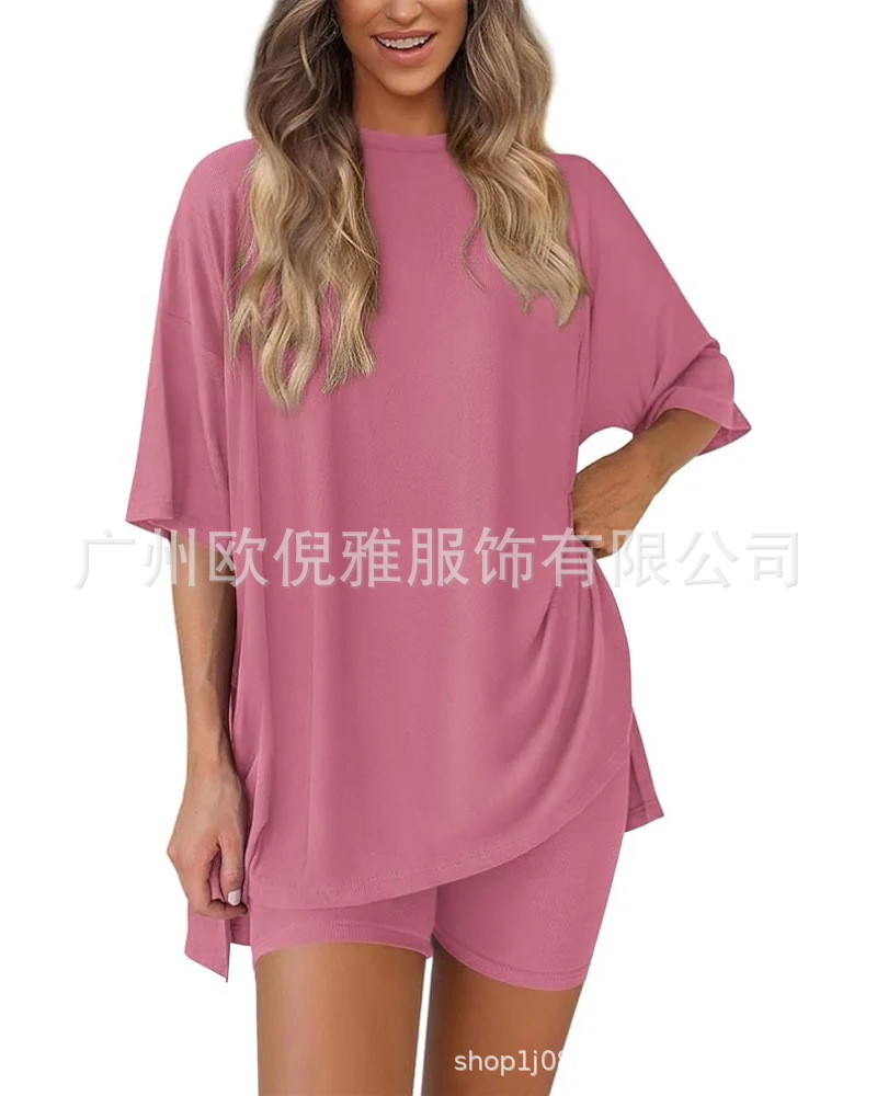 2025 봄 여름 신상품 크로스보더 루즈핏 대형 여성복 유럽 및 미국 패션 캐주얼 홈웨어 반팔 티셔츠 반바지