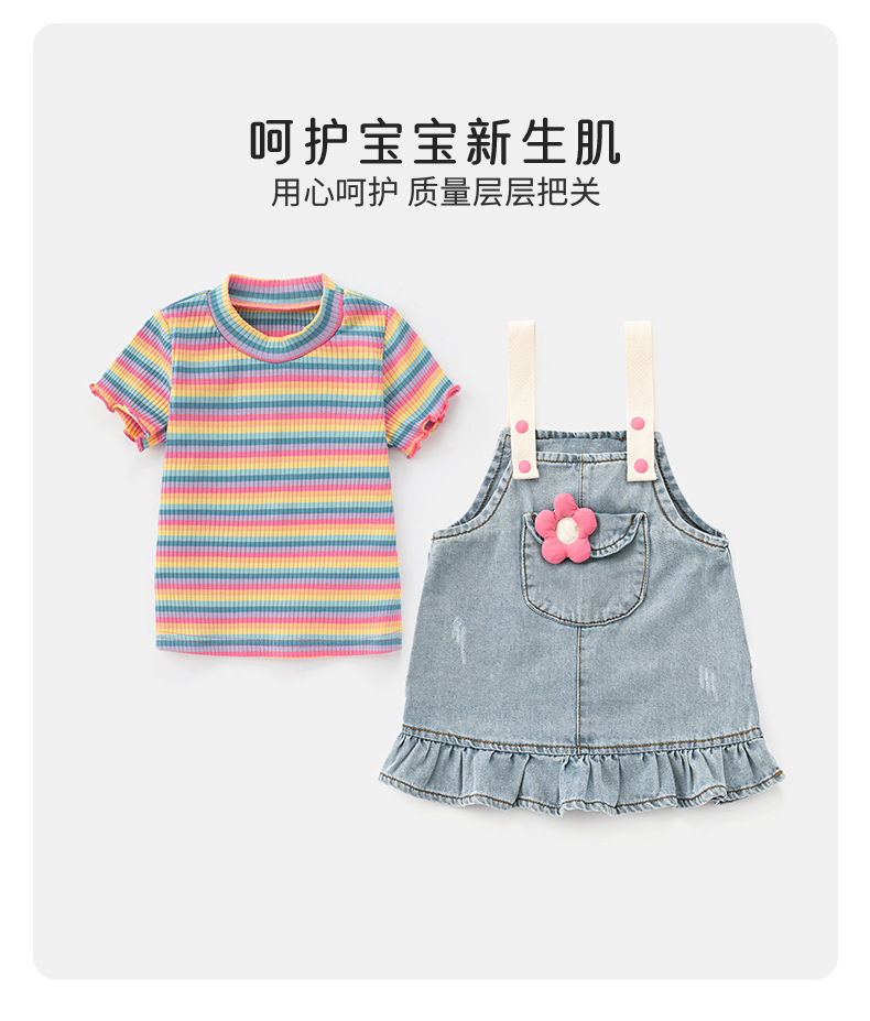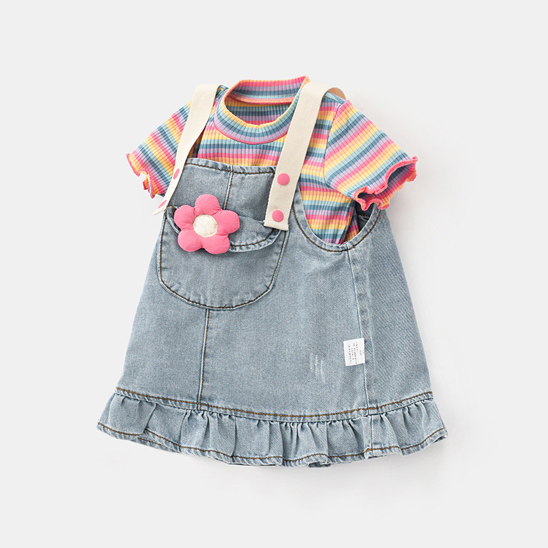 아기 스타일 반팔 세트 2025 여름 소녀 아기 데님 세트 치마 투피스 원피스 3635