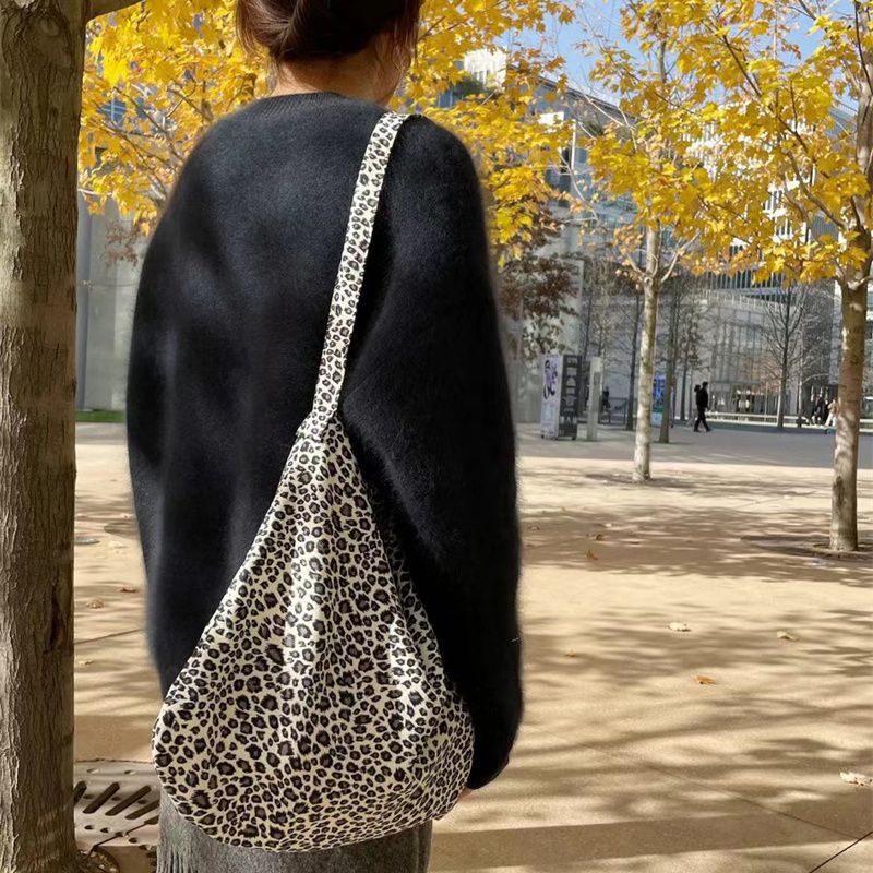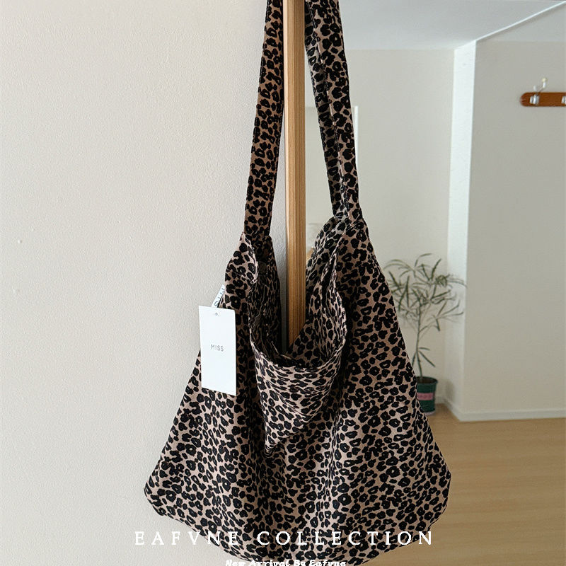 잔디 레오파드 무늬 가방 한국 블로거 캔버스 가방 콩 샤오젠 같은 스타일 게으른 스타일 어깨 가방 크로스 바디 가방 대용량