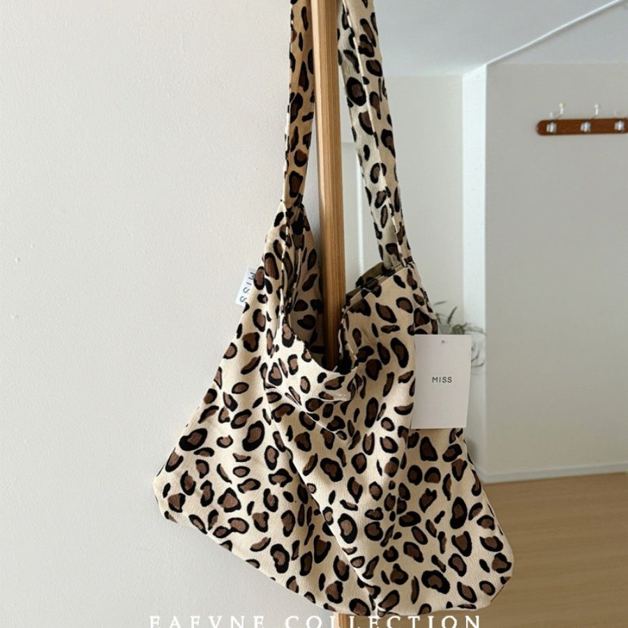 잔디 레오파드 무늬 가방 한국 블로거 캔버스 가방 콩 샤오젠 같은 스타일 게으른 스타일 어깨 가방 크로스 바디 가방 대용량스토어 가기