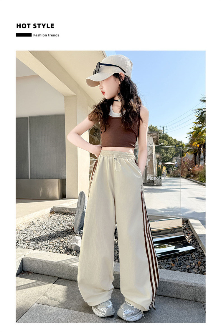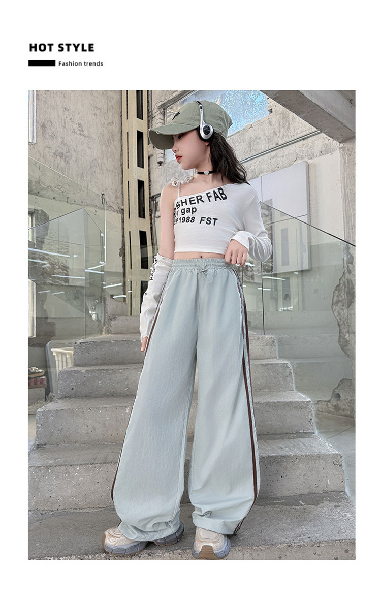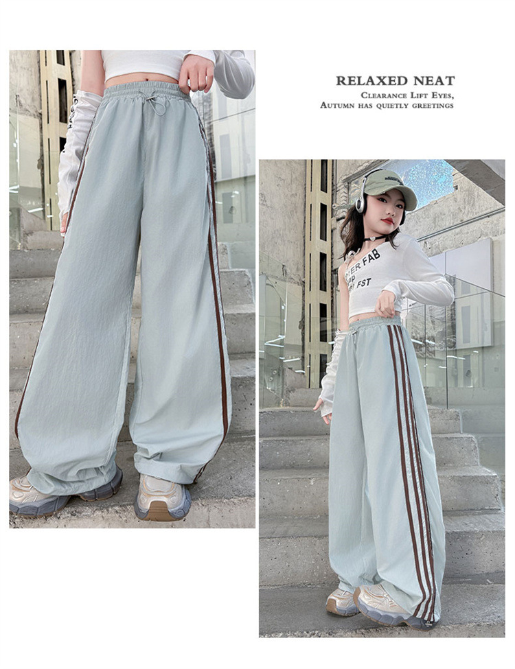 소녀 여름 바지 어린이 서양식 얇은 높은 허리 빠른 건조 슬림핏 느슨한 모기 방지 바지 스트레이트 쿨 풀 업 바지스토어 가기