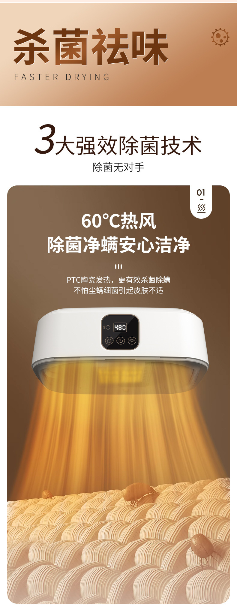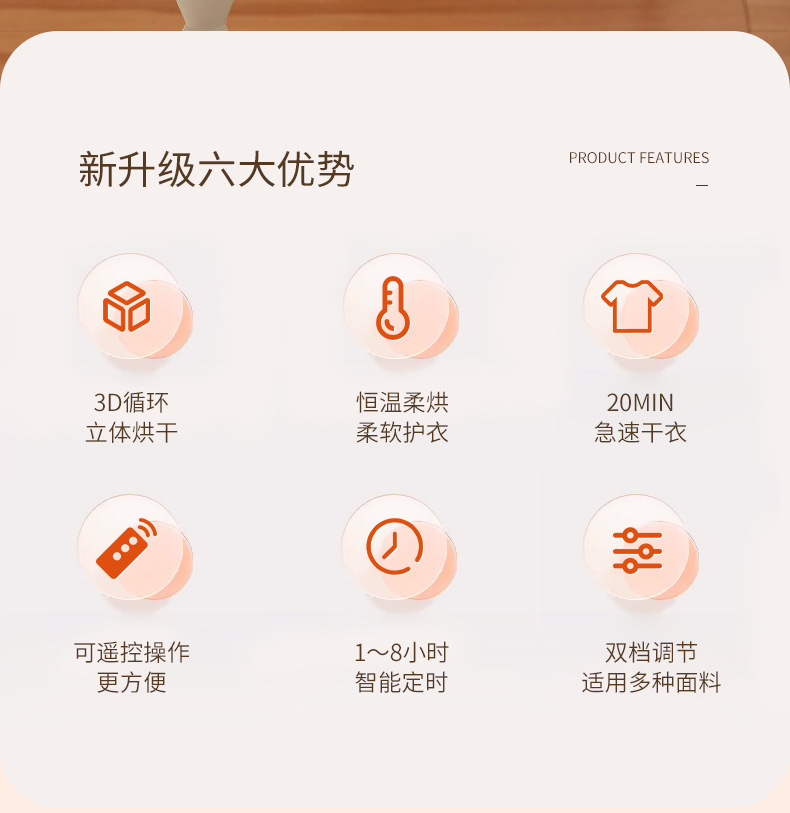 产品卖点:暖烘除味净螨、巧捷快速干衣