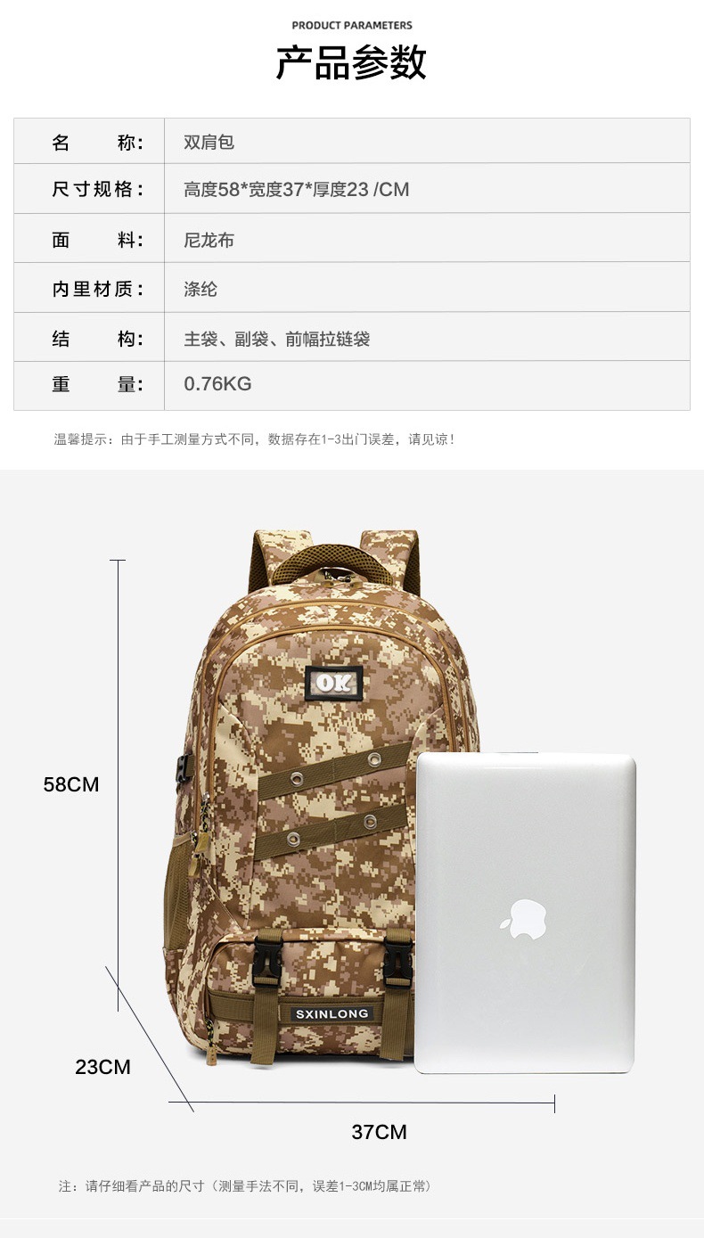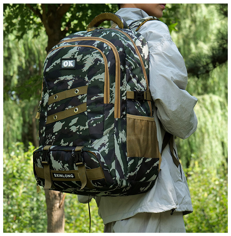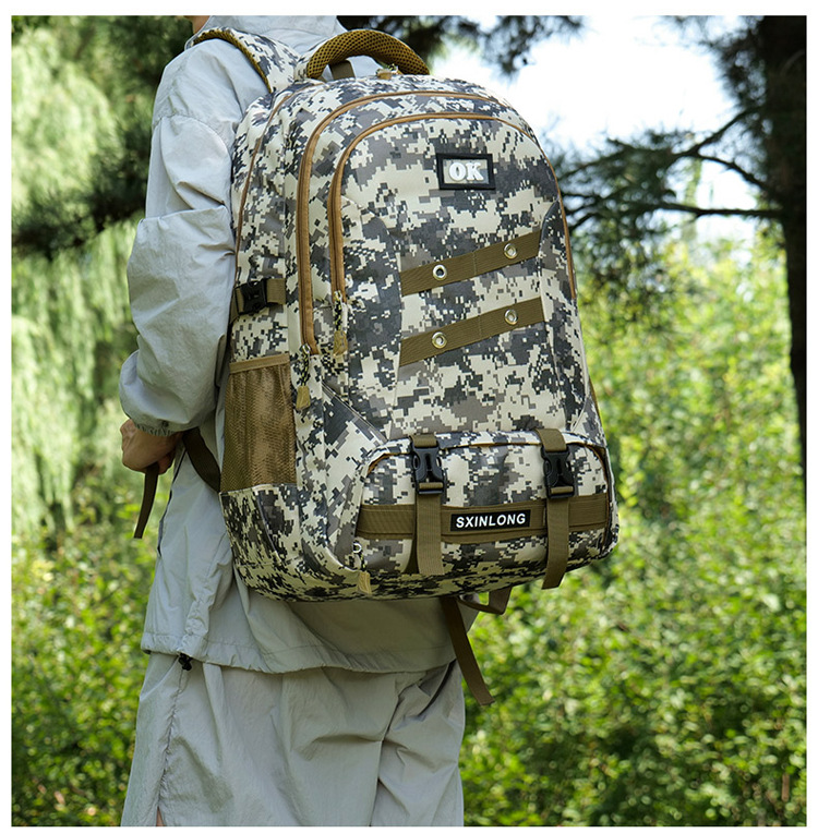 초대형 배낭 위장 배낭 남성과 여성 야외 여행 하이킹 등산 가방 작업 배낭 방수 및 내구성