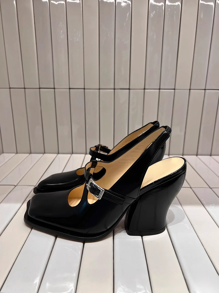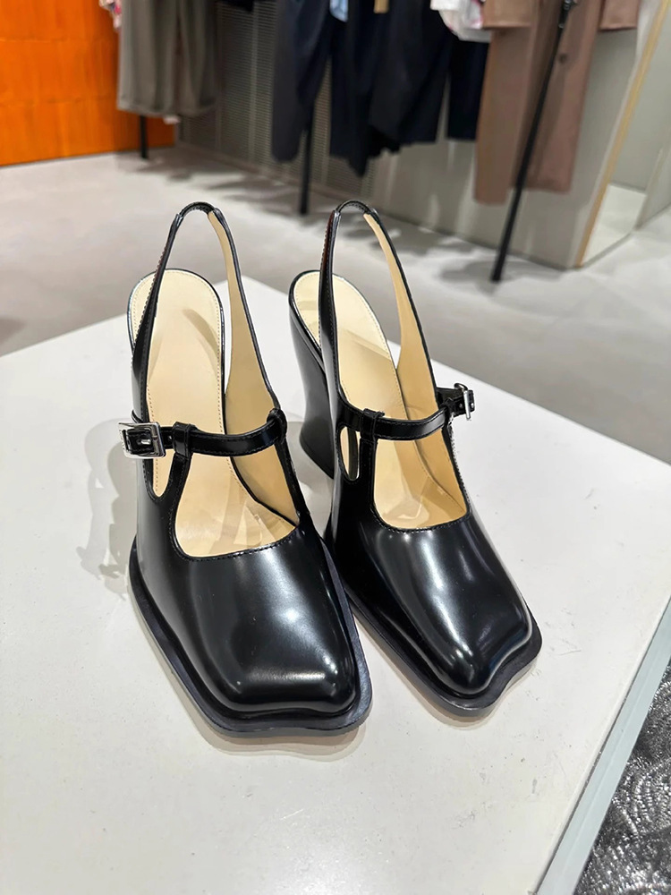 재고 ~ 프렌치 레트로 메리 제인 신발 여성 2025 뉴 스퀘어 발가락 한 캐릭터 버클 벨트 후면 빈 두꺼운 뒤꿈치 신발스토어 가기