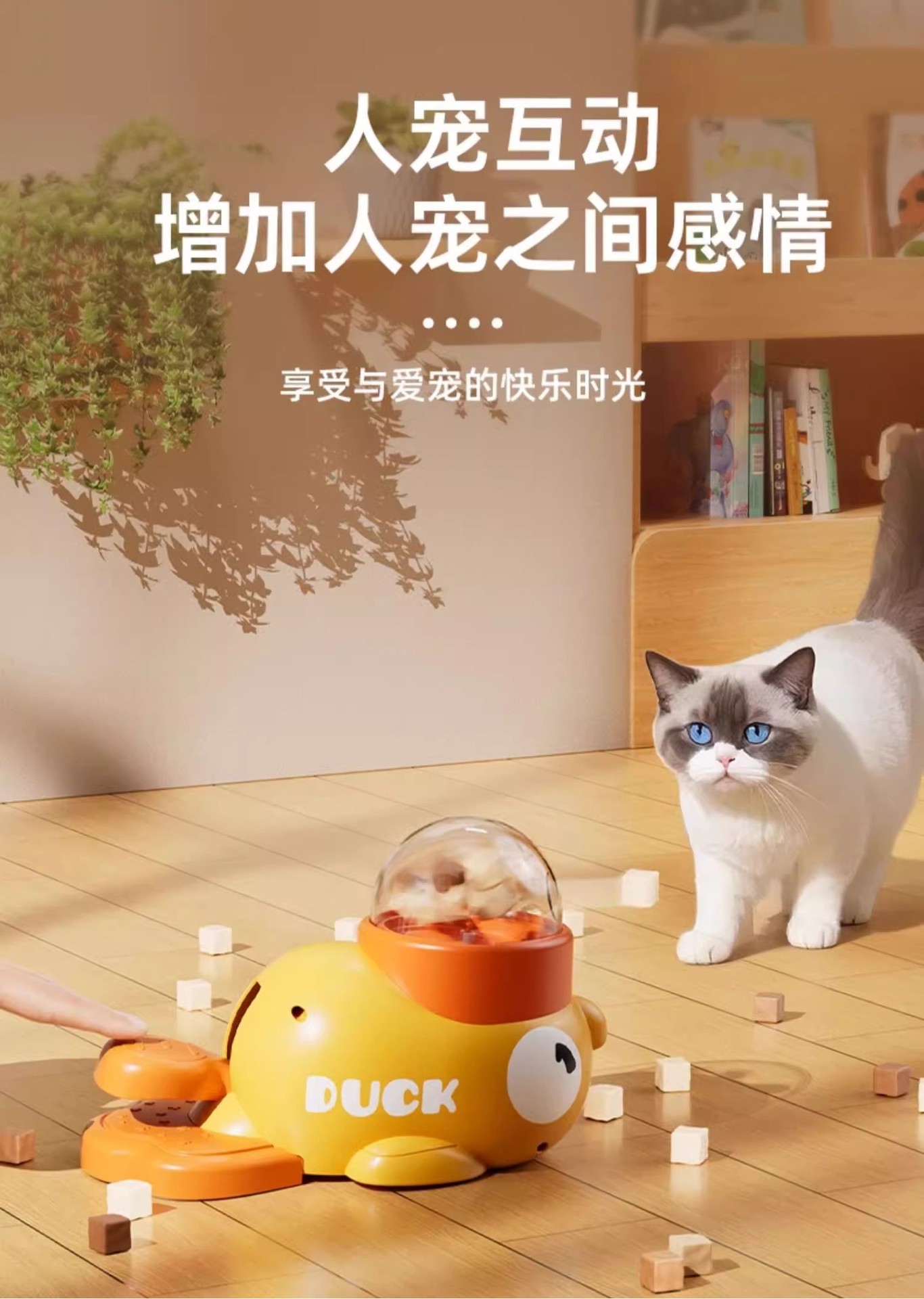 애완견, 작은 노란색 오리, 자동 먹이 공급기, 고양이 먹이 공급 장치, 고양이 장난감, 다기능