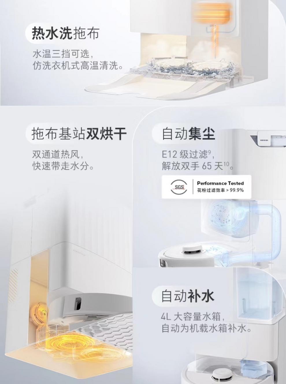청소 로봇 청소 및 드래그 통합 P10 프로 청소, 드래그, 세척 및 건조 통합 기계 자동 먼지 수집 뜨거운 물 세척