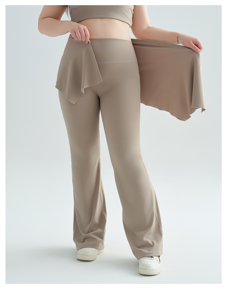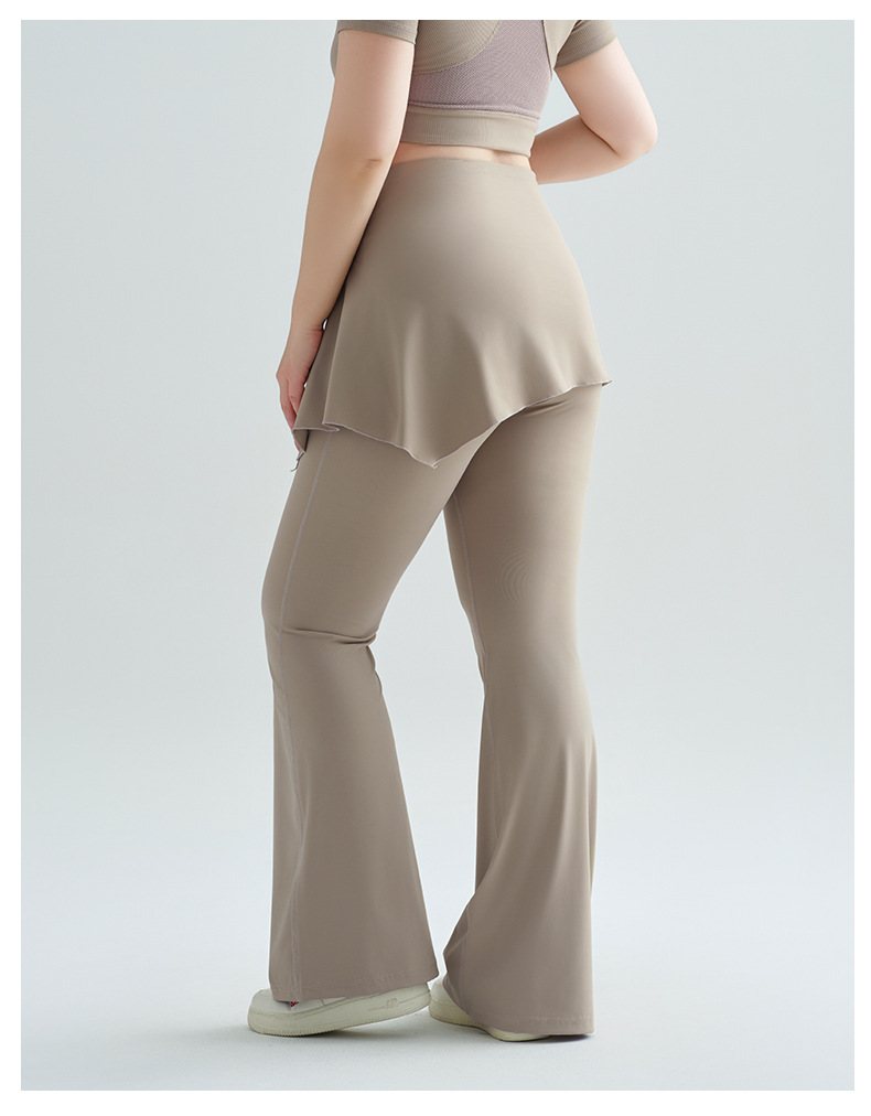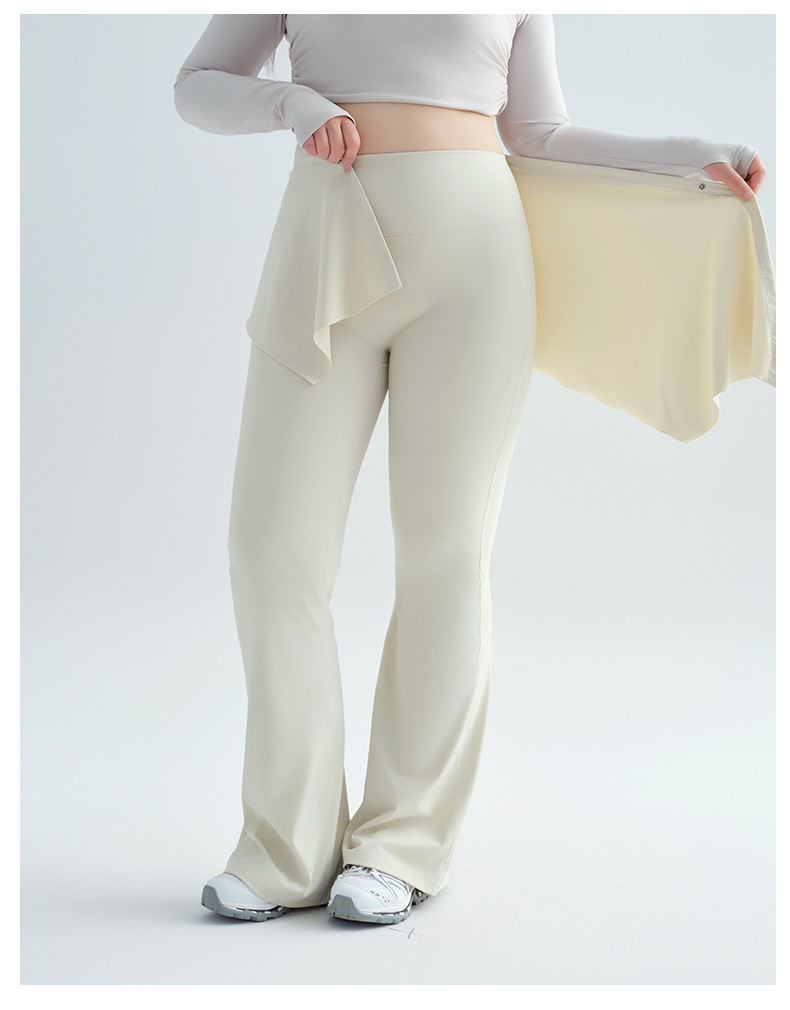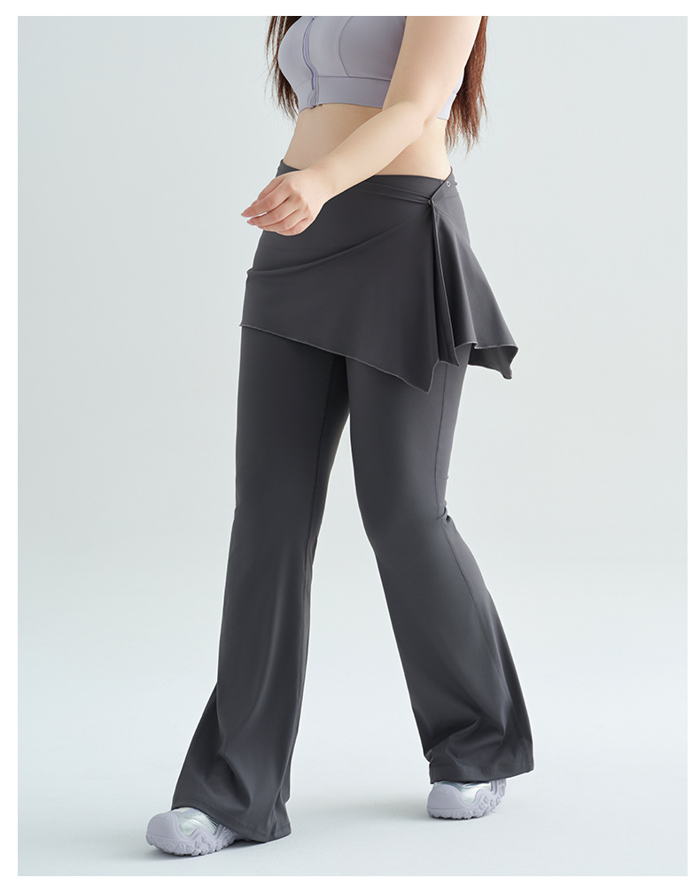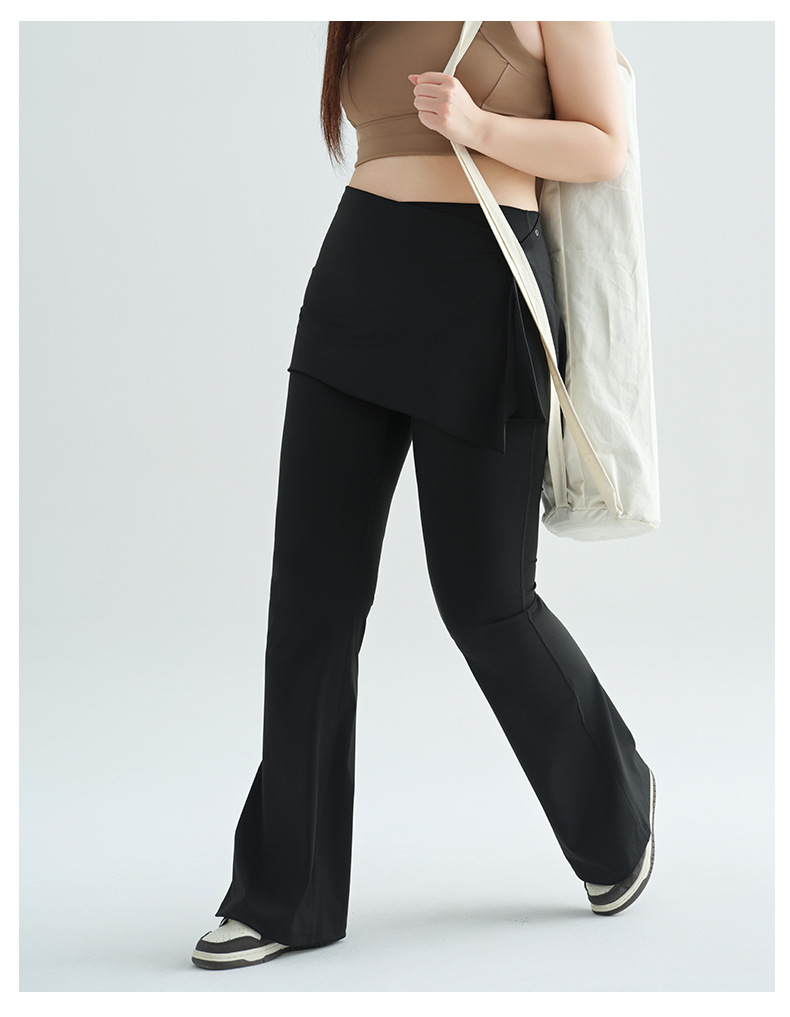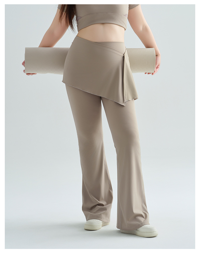 요가 캐주얼 바지 여성의 봄과 여름 새로운 높은 허리 엉덩이 슬리밍 맞춤형 아트 커튼 가짜 2 피스 요가 마이크로 플레어 바지
