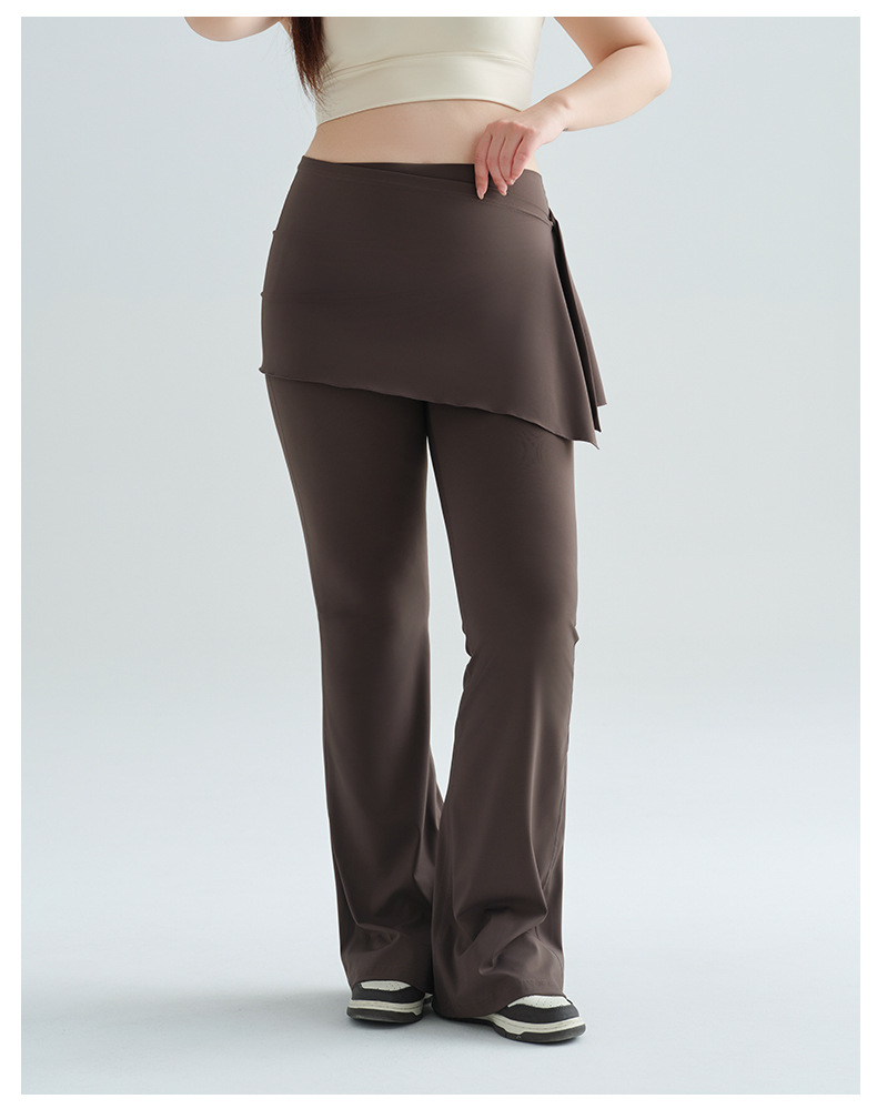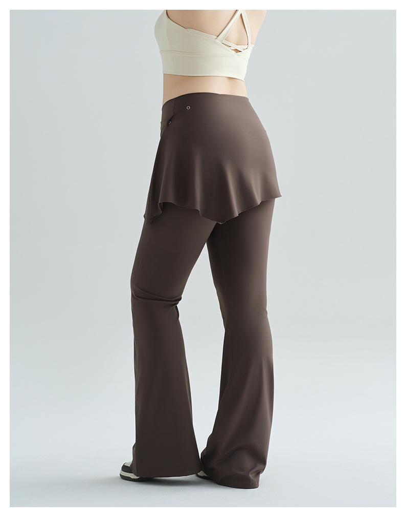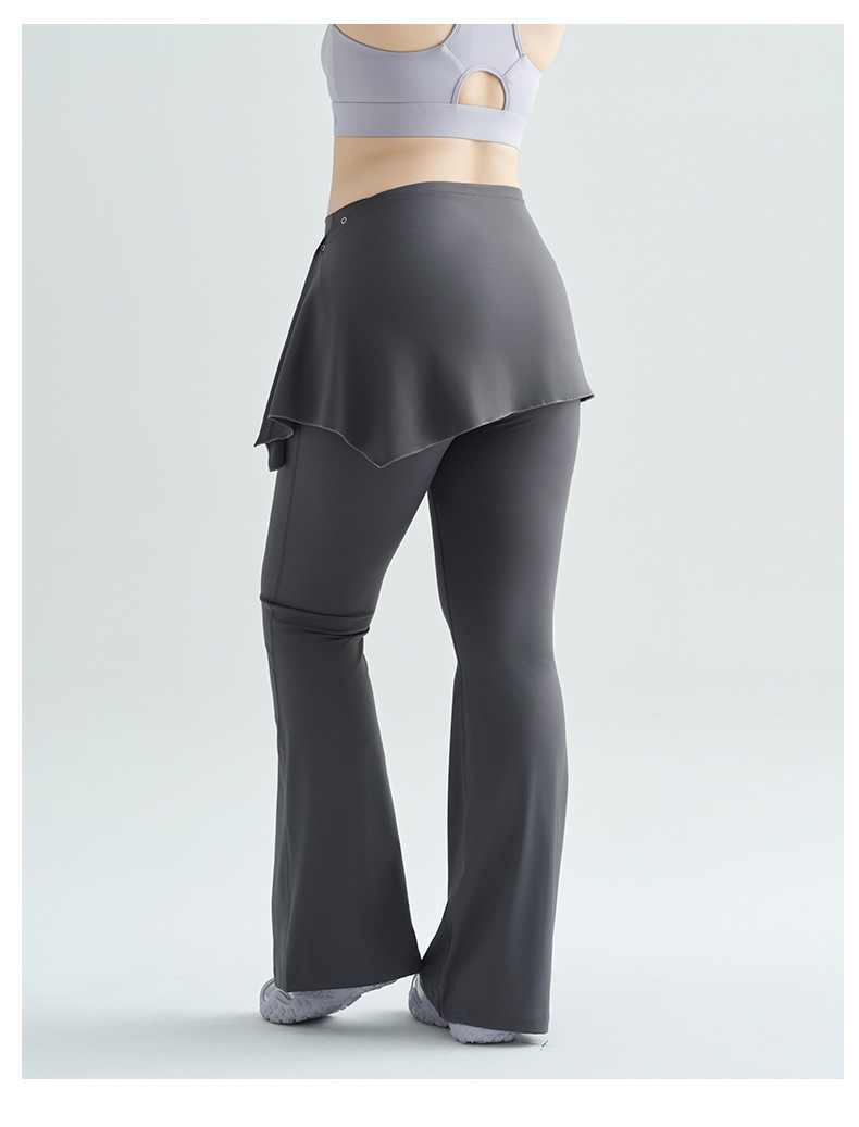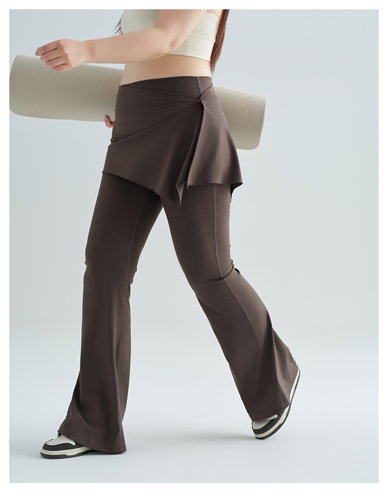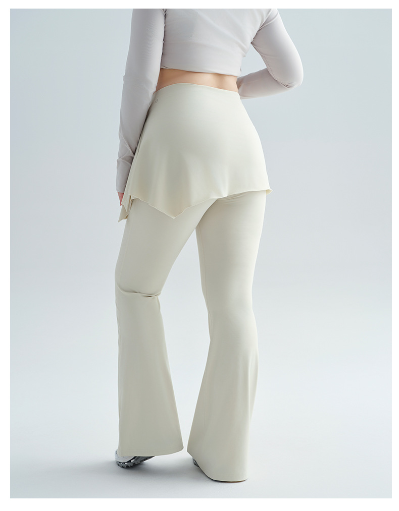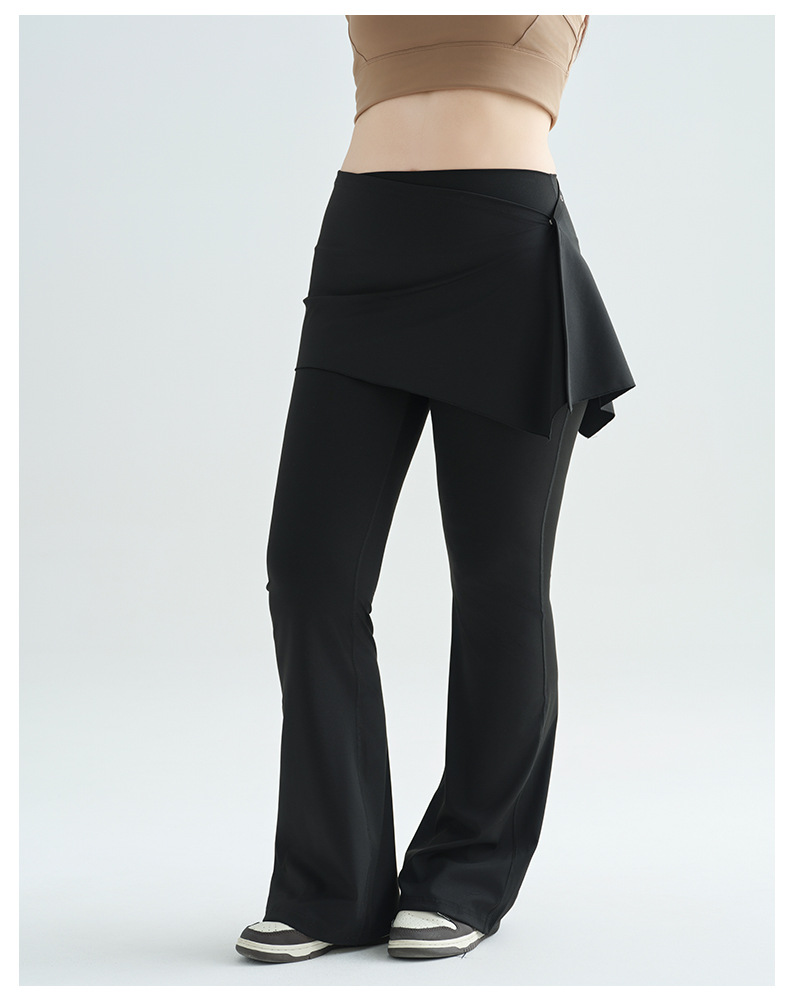 요가 캐주얼 바지 여성의 봄과 여름 새로운 높은 허리 엉덩이 슬리밍 맞춤형 아트 커튼 가짜 2 피스 요가 마이크로 플레어 바지