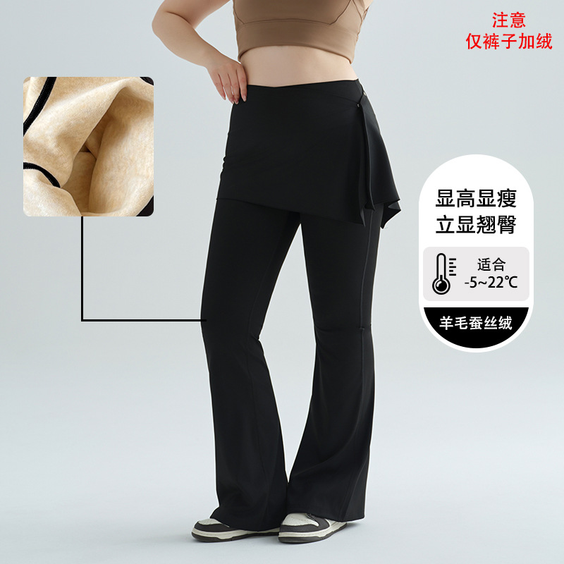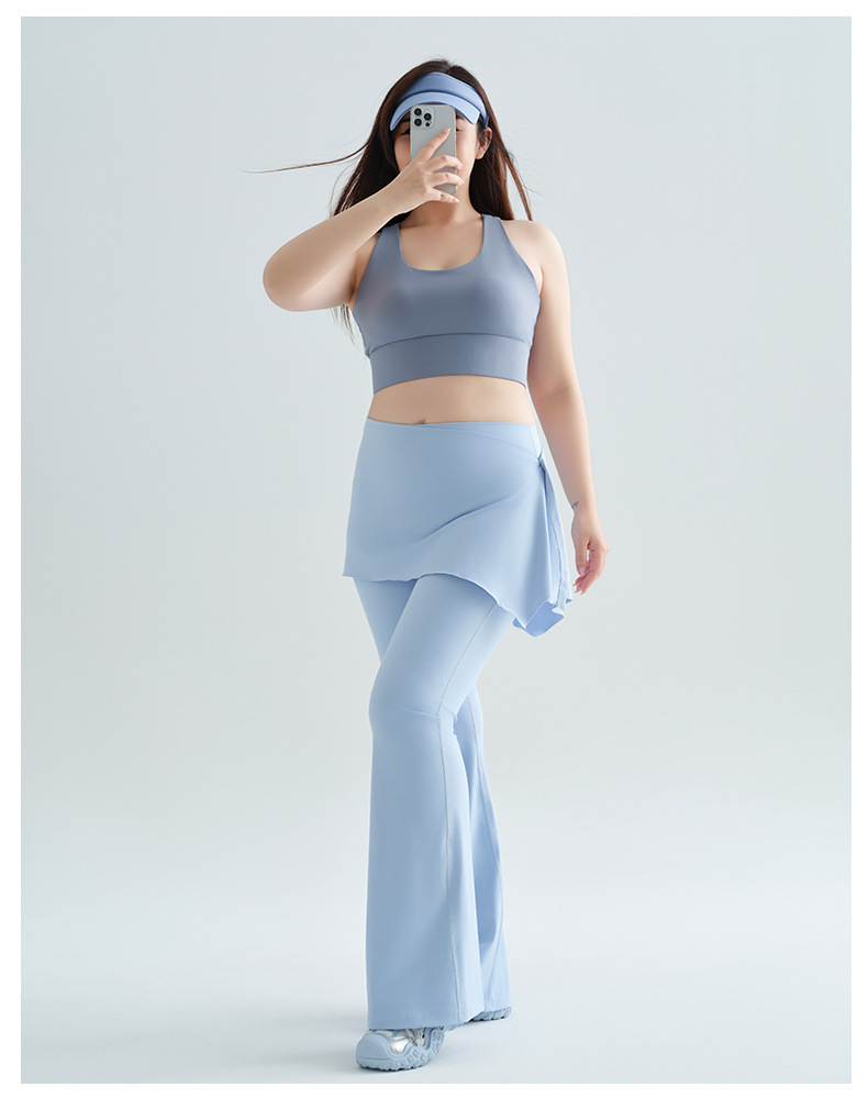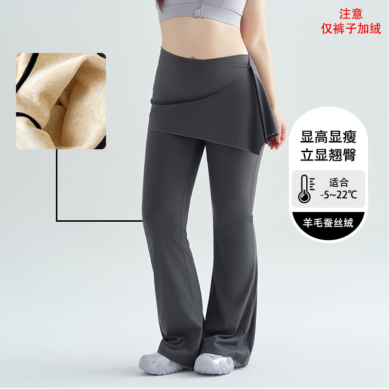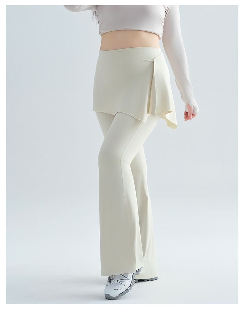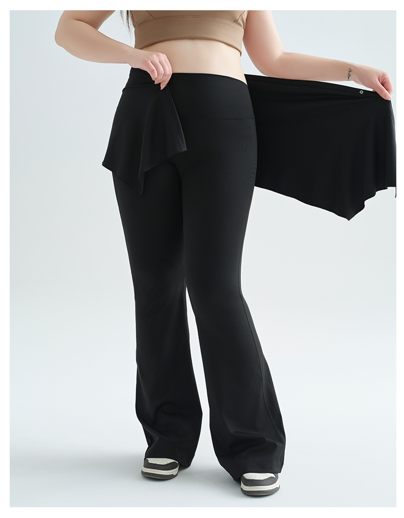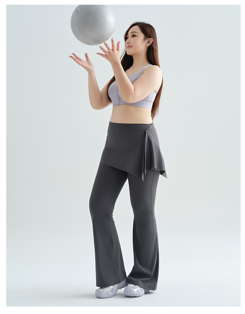 요가 캐주얼 바지 여성의 봄과 여름 새로운 높은 허리 엉덩이 슬리밍 맞춤형 아트 커튼 가짜 2 피스 요가 마이크로 플레어 바지