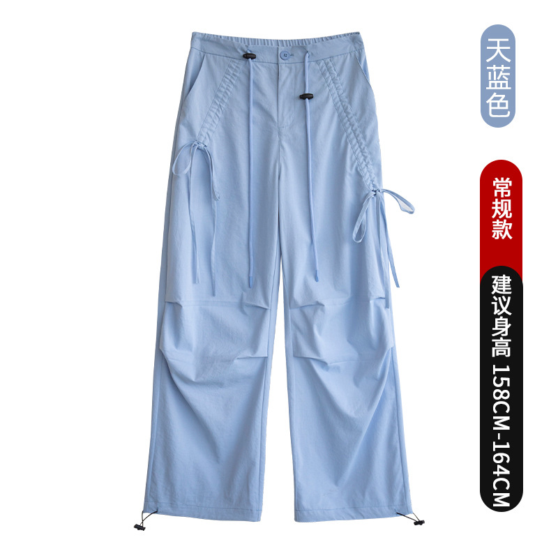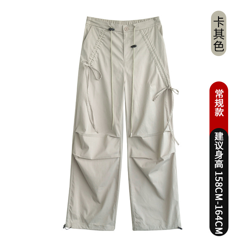 여성용 아메리칸 스타일 속건 작업복, 등산 스포츠 바지, 2025 봄 가을 신상 하이웨이스트 보우 캐주얼 와이드 팬츠스토어 가기
