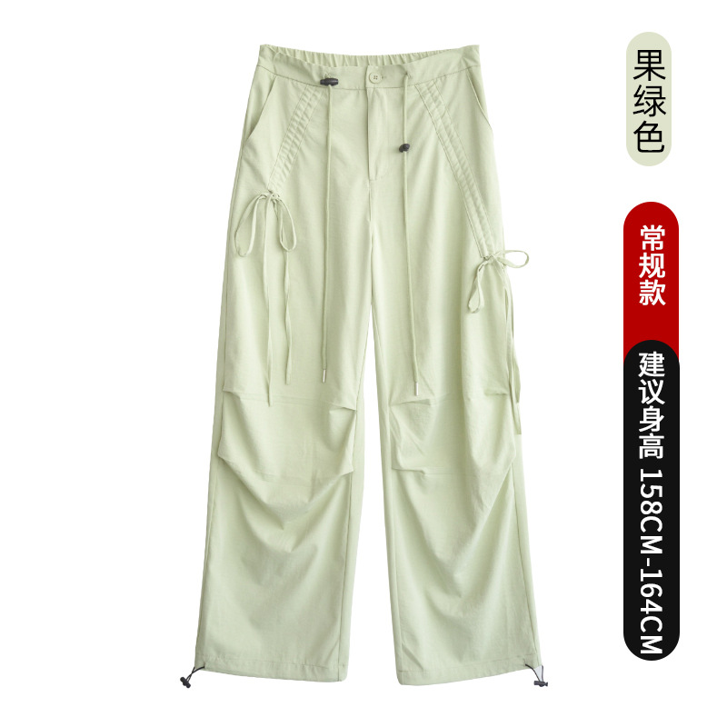 여성용 아메리칸 스타일 속건 작업복, 등산 스포츠 바지, 2025 봄 가을 신상 하이웨이스트 보우 캐주얼 와이드 팬츠