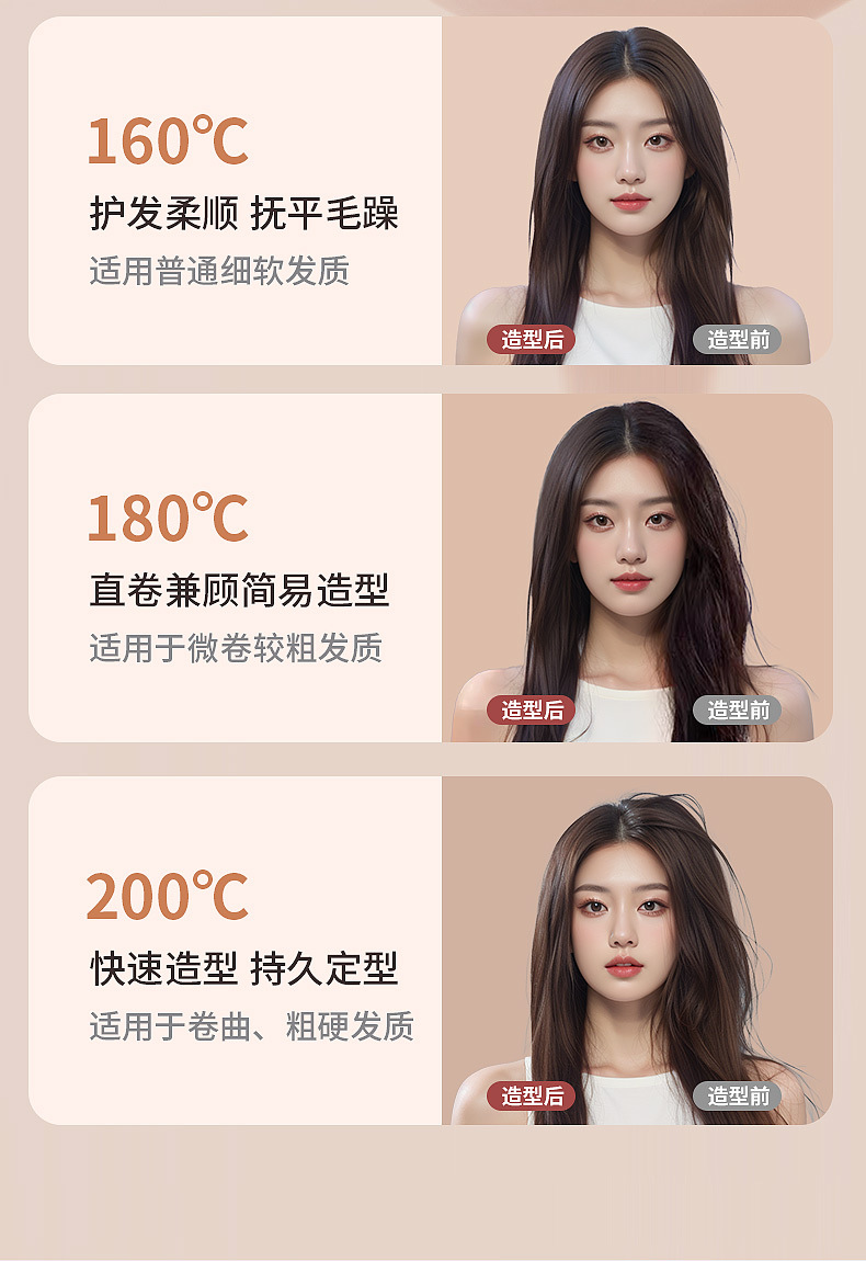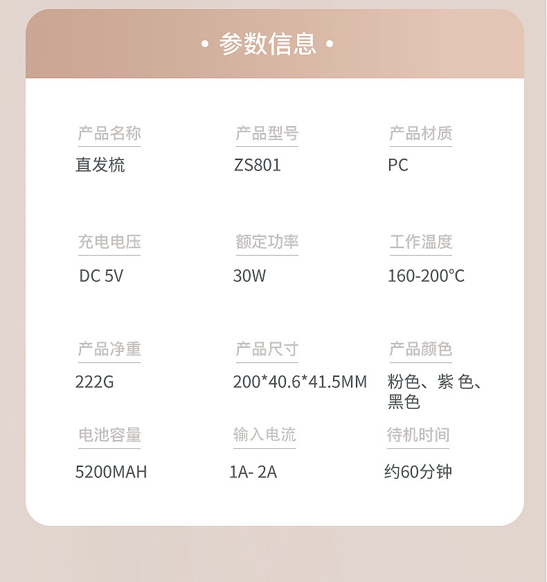 1、下方按钮是电源开关键,长按3秒开启,升温启动,默认为160℃,,电源健的指示灯在呼吸,电源灯在指示灯状态代表加热中,每次依次按下往上调节,有3个可调级别,指示灯每一次变化一次作为提示,温度调节+20℃,共3档(160180 200 ℃)温度设定,停止闪烁代表温度已达到设定温度。 自动恒温功能。,加热至最高温200度,时间约为3分钟左右。长按开键3秒关机,整机处于待机状态。在停止工作状态下,15分钟内自动关机。