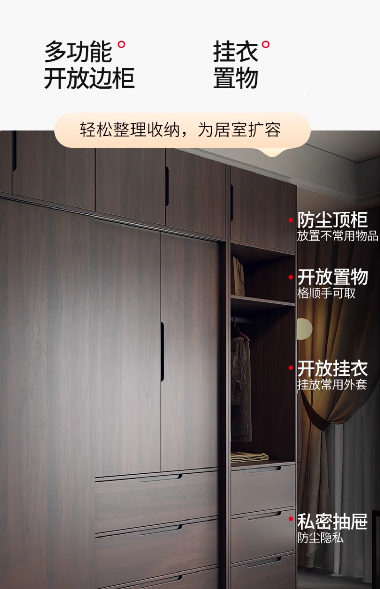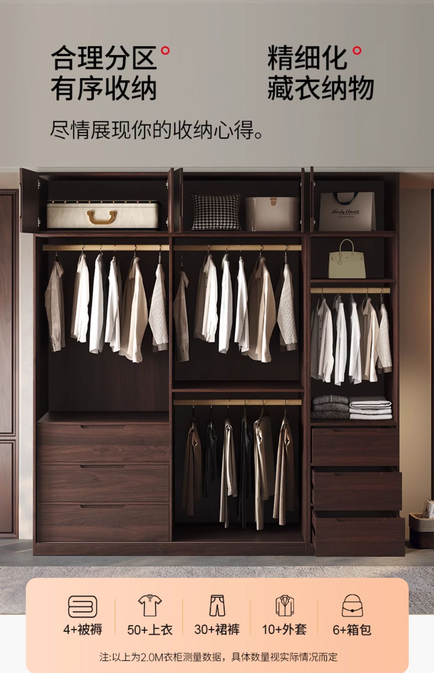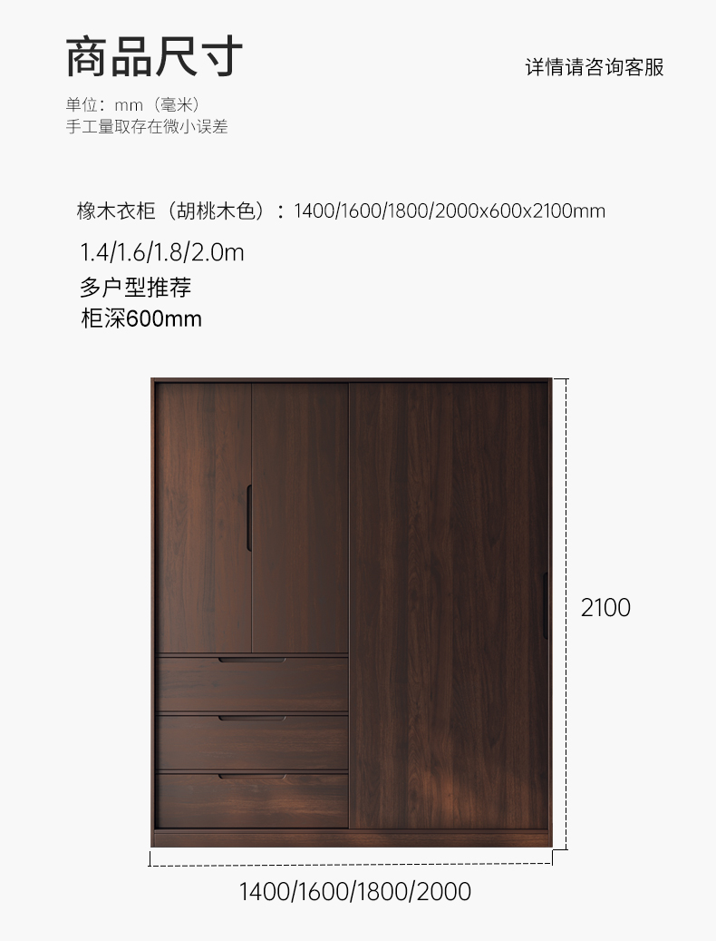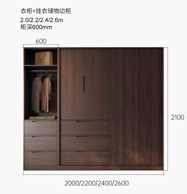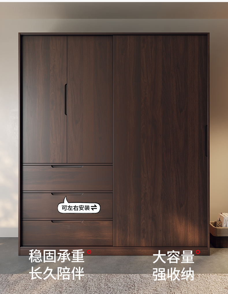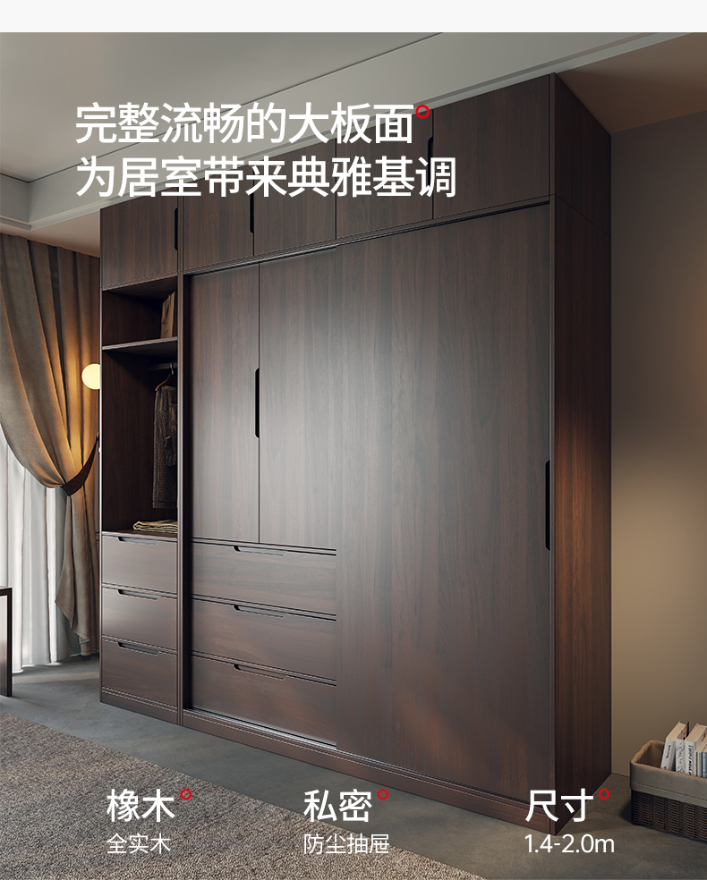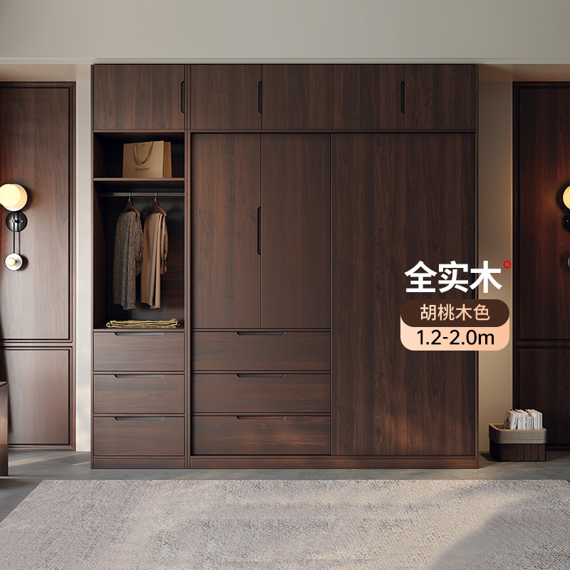 모든 단단한 나무 검은 호두 색상 오크 옷장 라이트 럭셔리 현대 간단한 침실 대용량 북유럽 마스터 침실 저장 Q^l