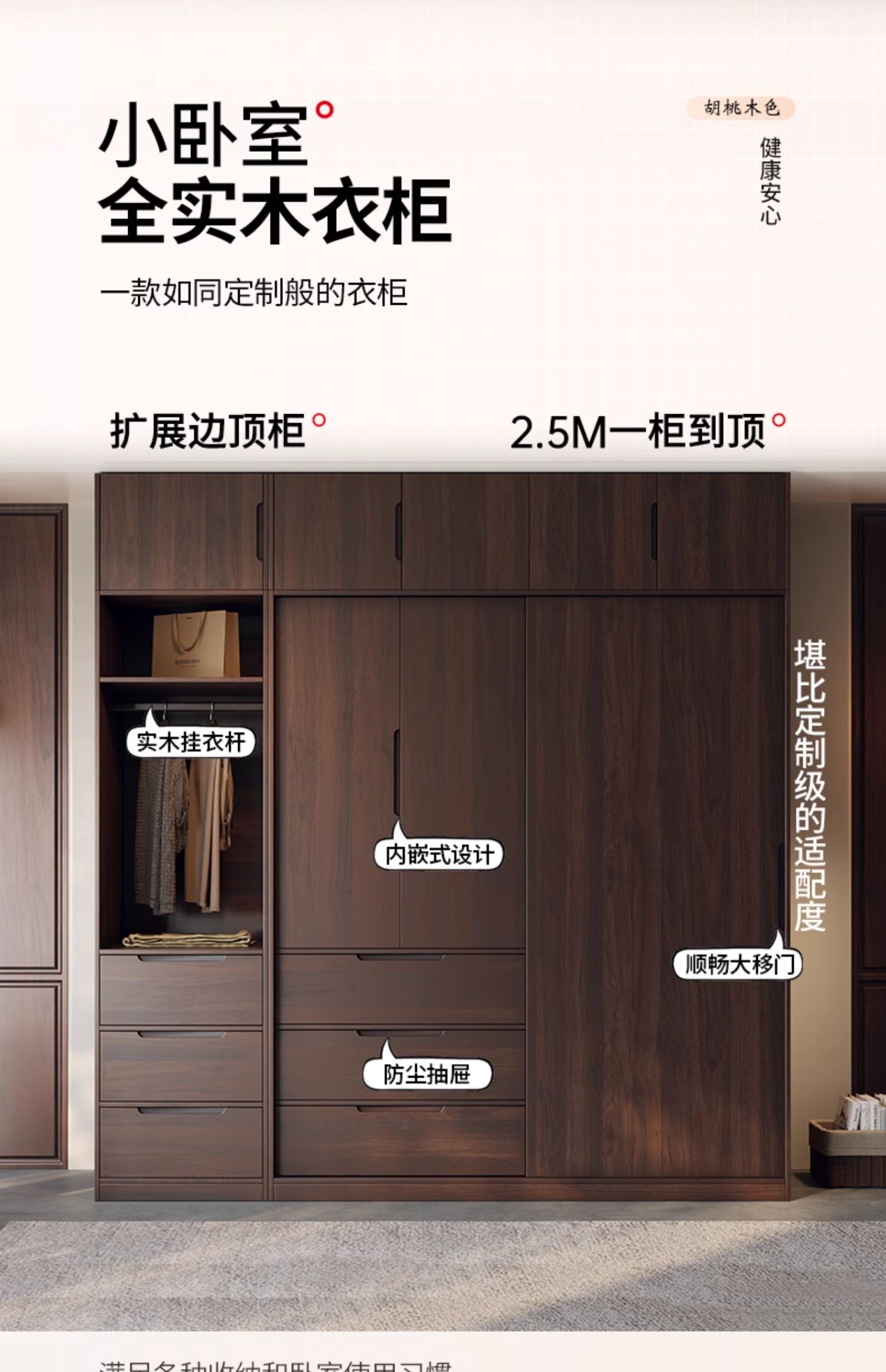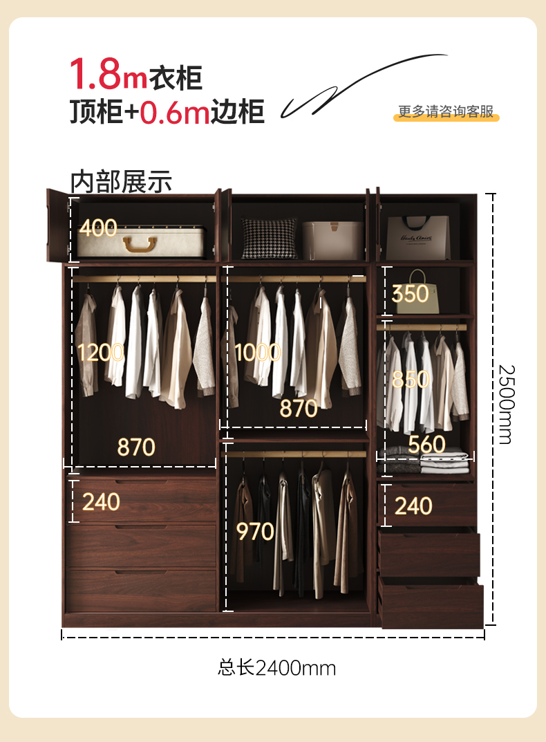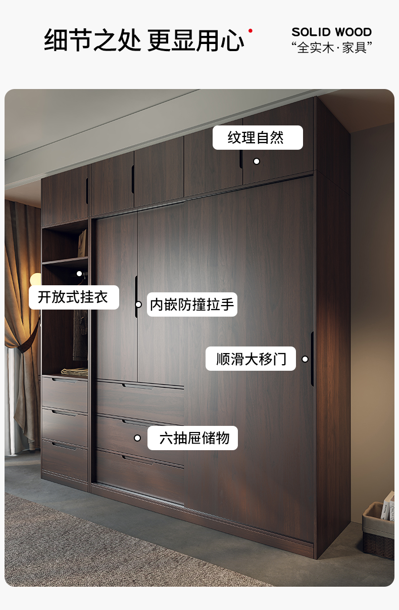 모든 단단한 나무 검은 호두 색상 오크 옷장 라이트 럭셔리 현대 간단한 침실 대용량 북유럽 마스터 침실 저장 Q^l스토어 가기