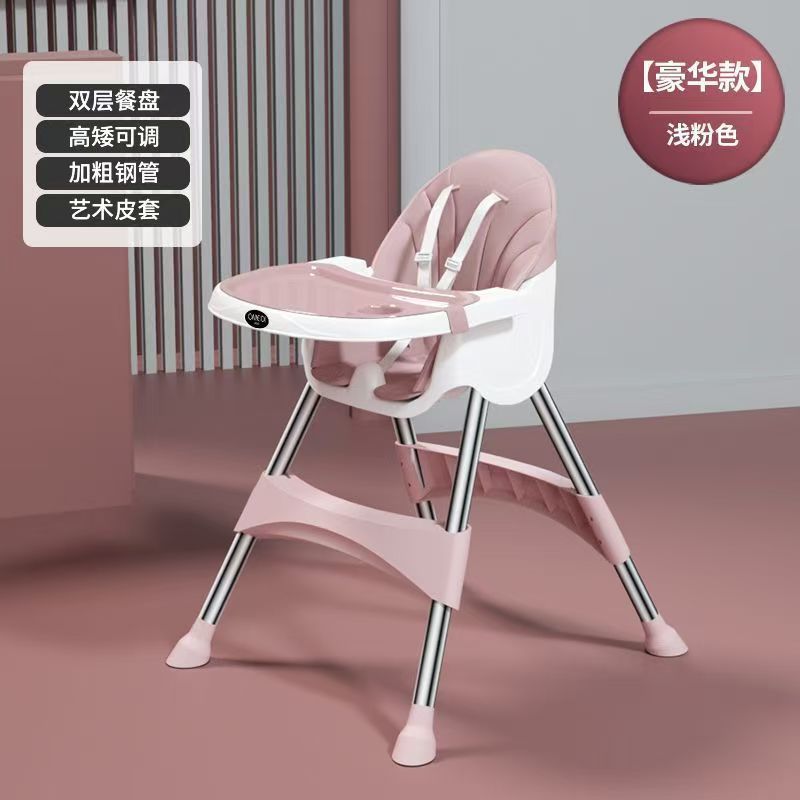 • 접이식 럭셔리 모델(바퀴 없음) - 로즈 핑크 {이중 디너 플레이트 + PU 가죽 케이스} 조절 가능