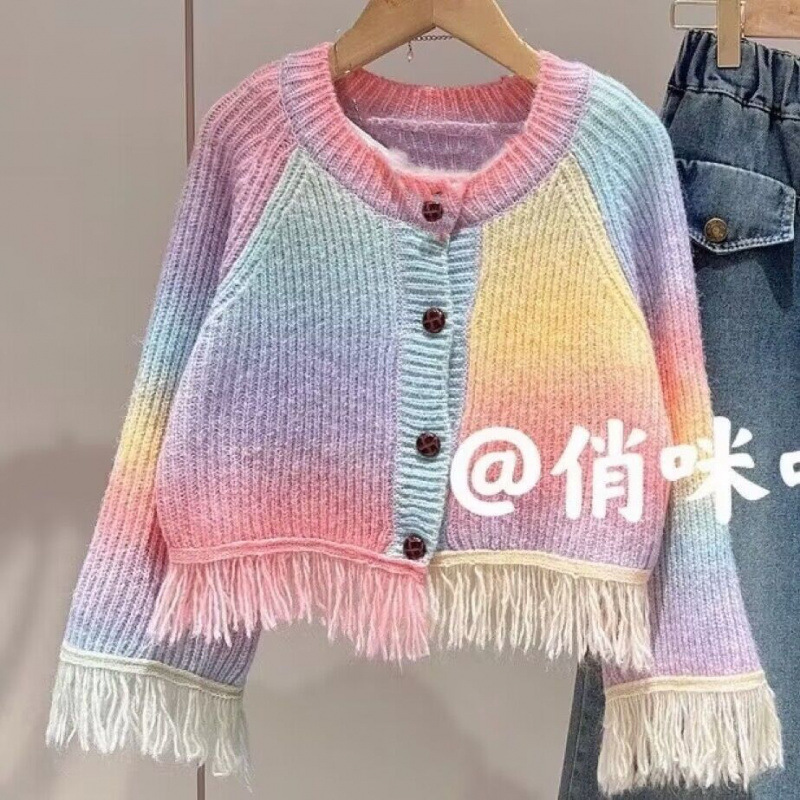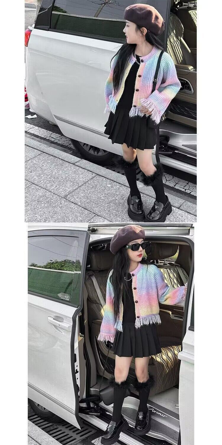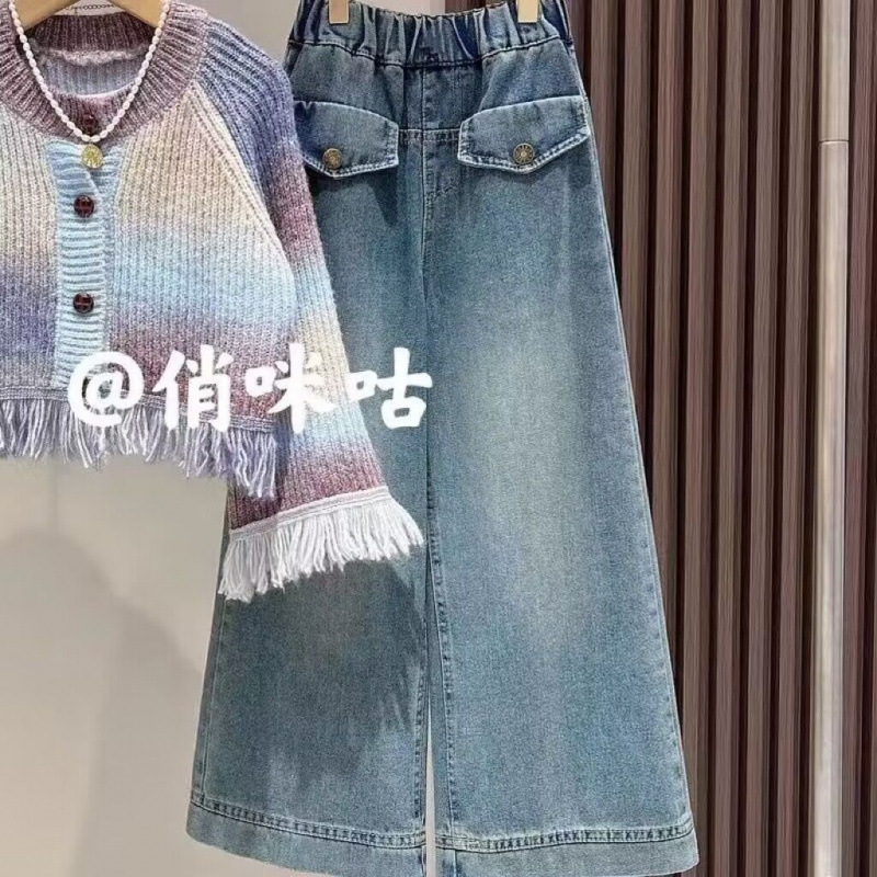 여자 가을 정장 2024 새로운 아기 소녀 패션 재킷 카디건 어린이 유행 청바지 투피스 세트 유행