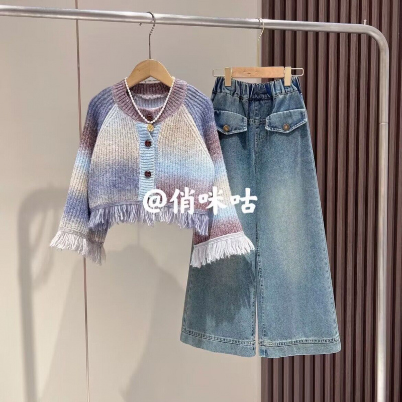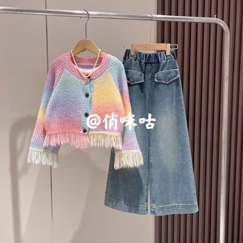 여자 가을 정장 2024 새로운 아기 소녀 패션 재킷 카디건 어린이 유행 청바지 투피스 세트 유행스토어 가기