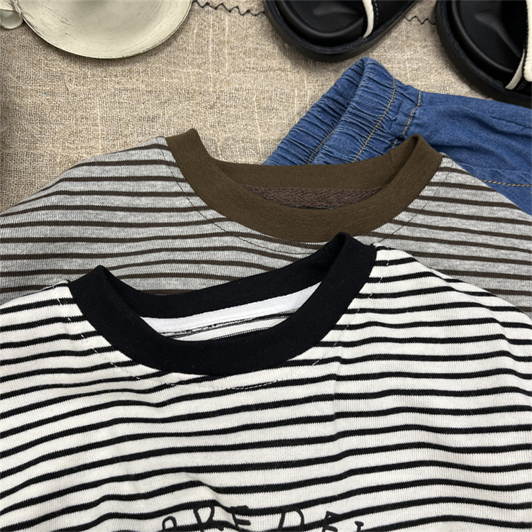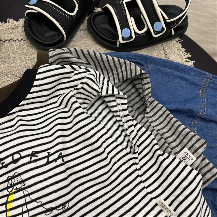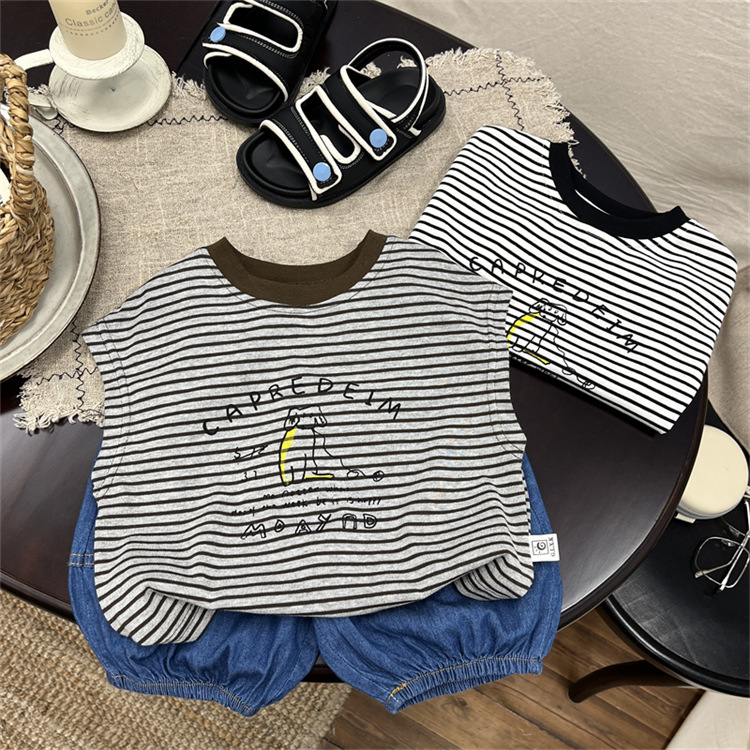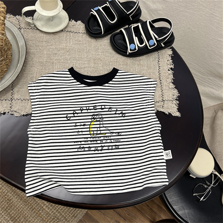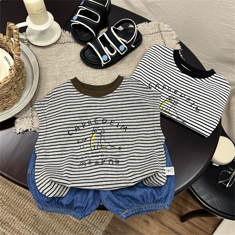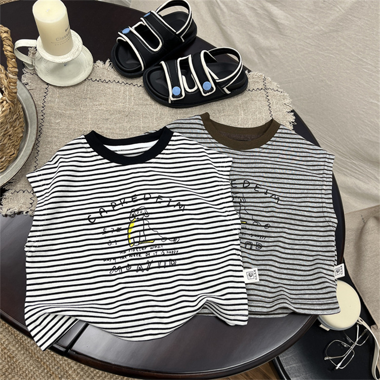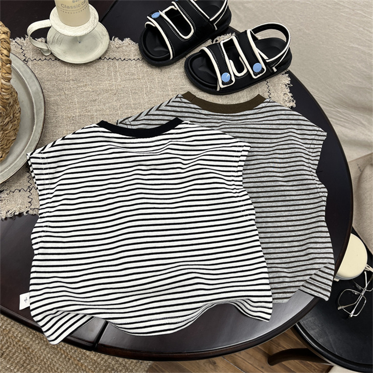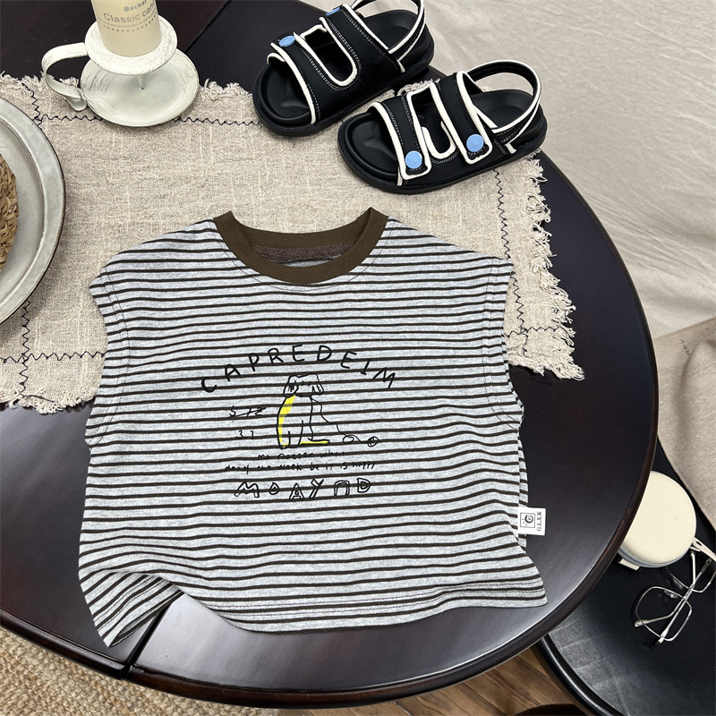 어린이 민소매 티셔츠 2025 여름 새 소년 한국 스타일 캐주얼 스트라이프 조끼 소년 아기의 얇은 베이스 셔츠스토어 가기