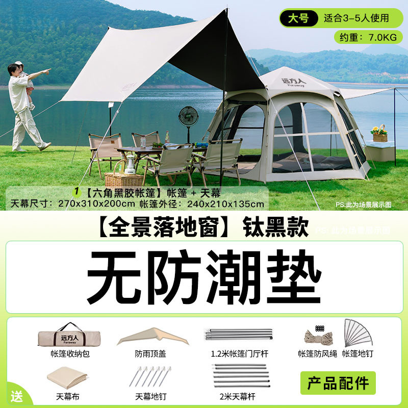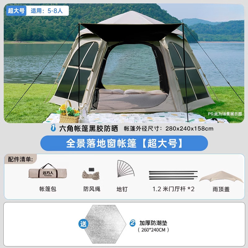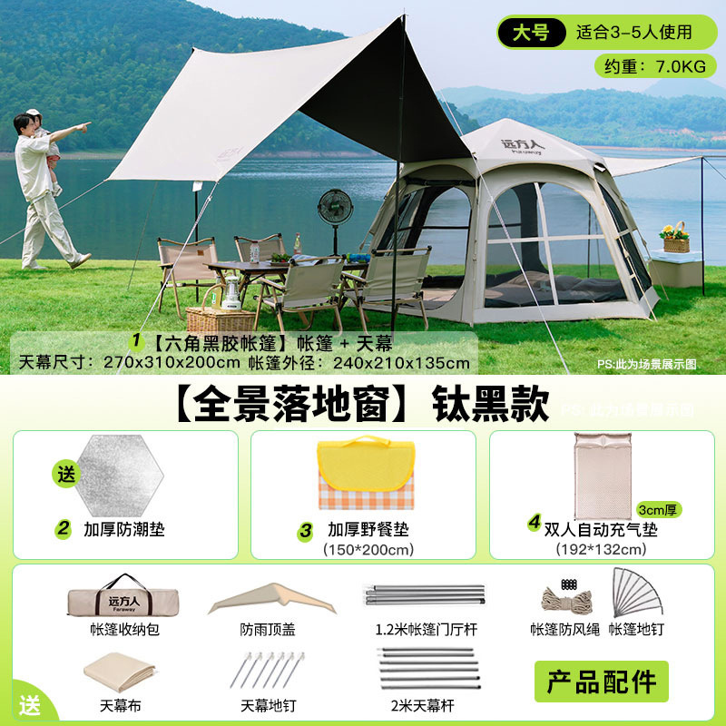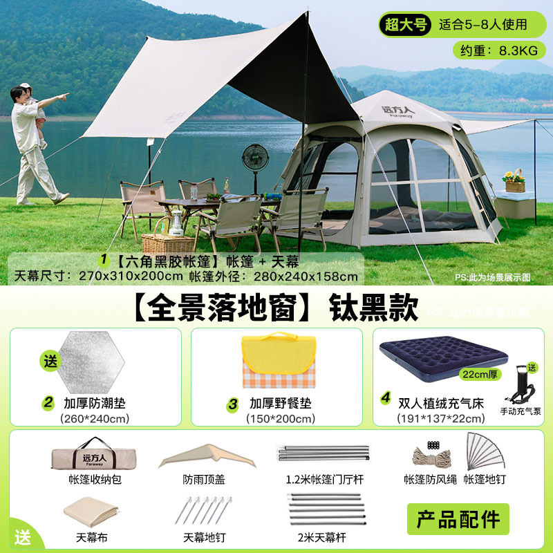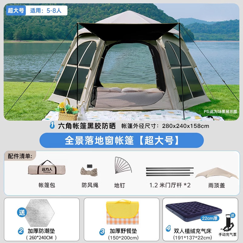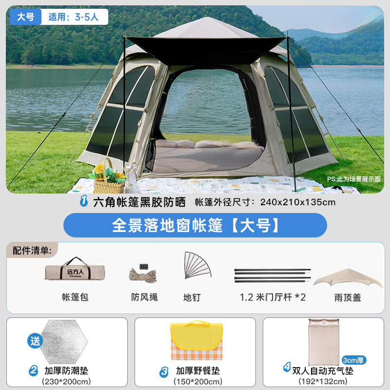 • [두꺼운 비닐] 대형 육각형 텐트 + [캐노피] + 안티 와일드 + 자동 공기주입식 침대