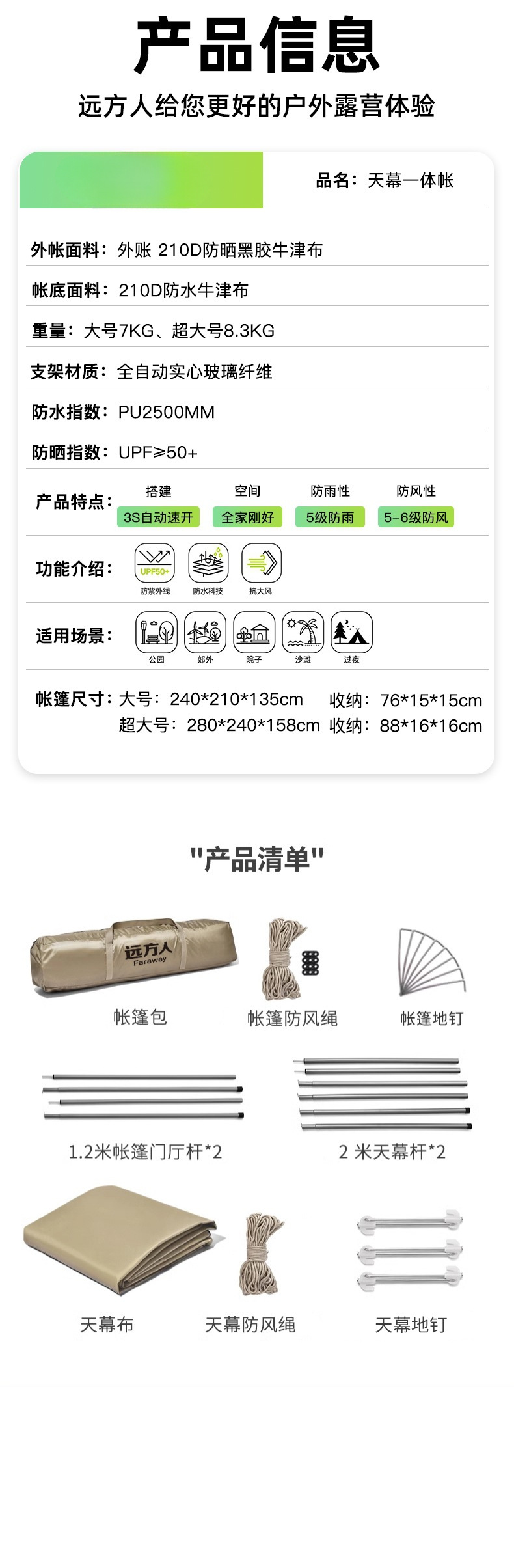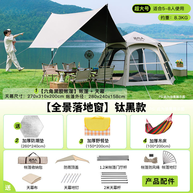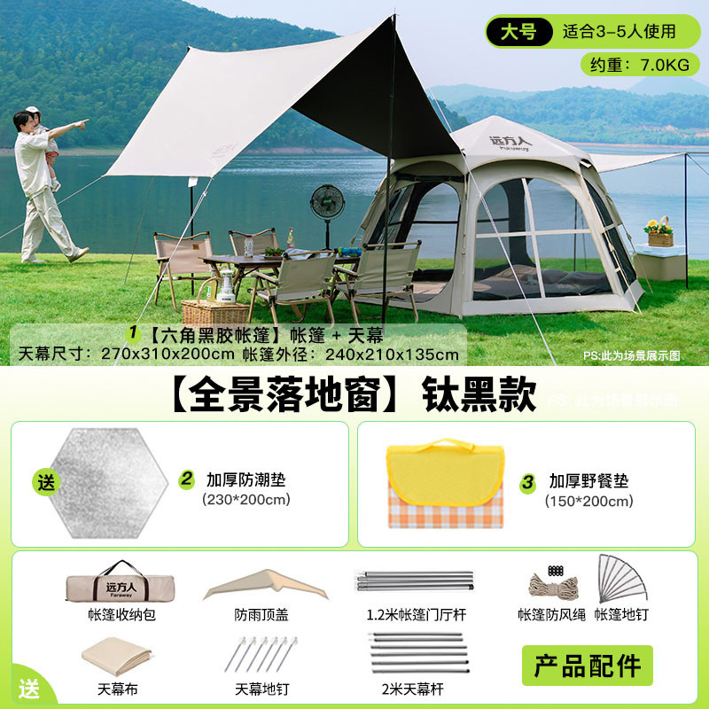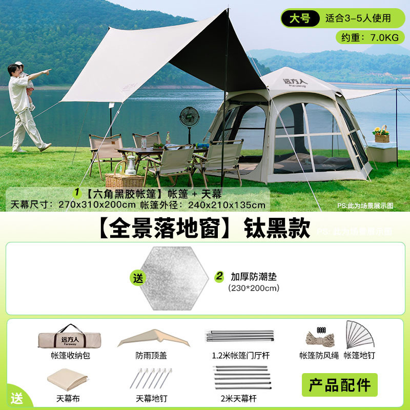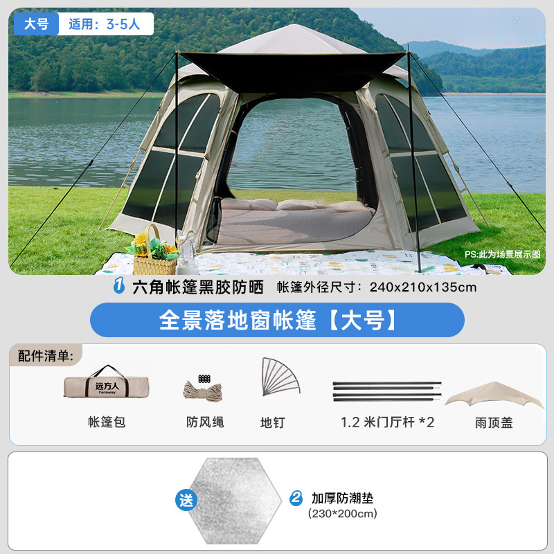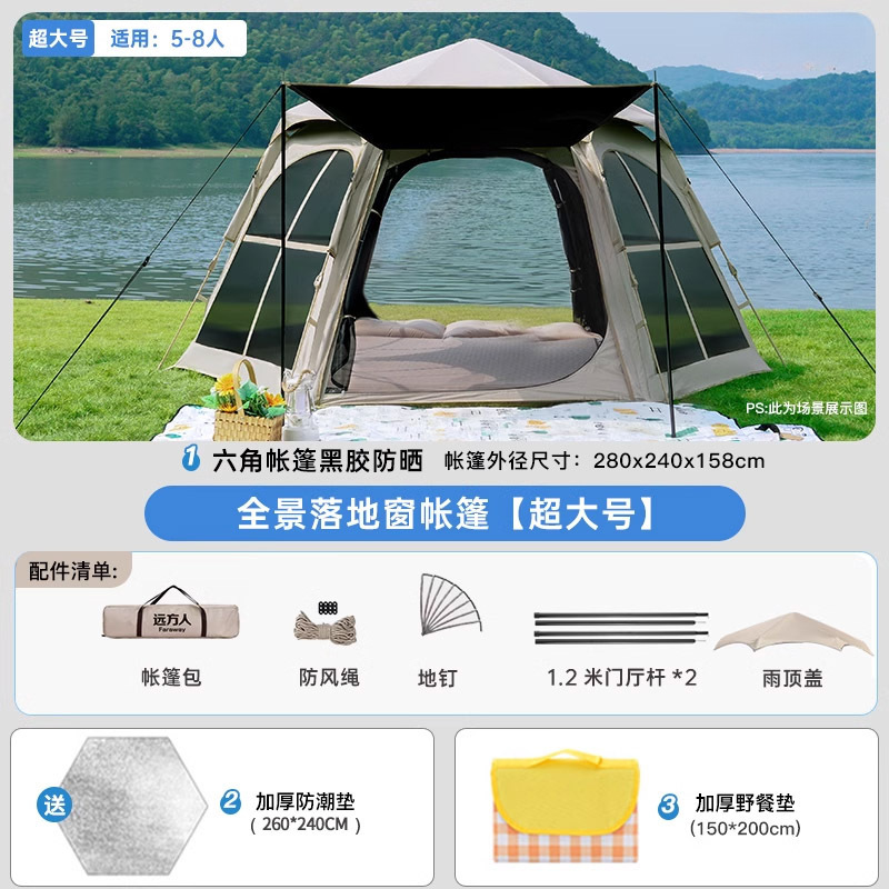 • [두꺼운 비닐] 대형 육각형 텐트 + [캐노피] + 안티 와일드 + 자동 공기주입식 침대