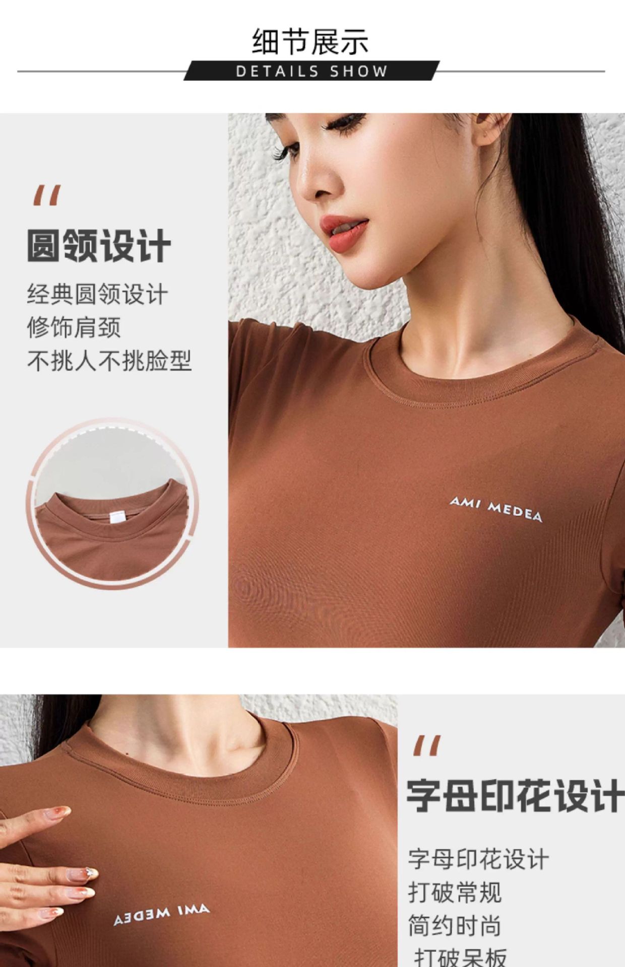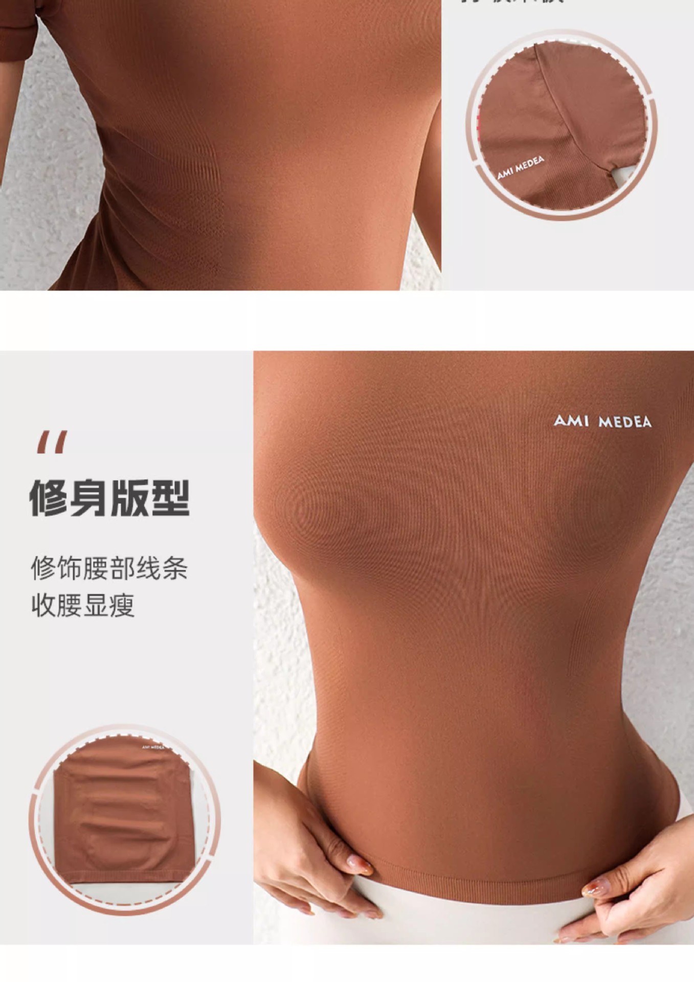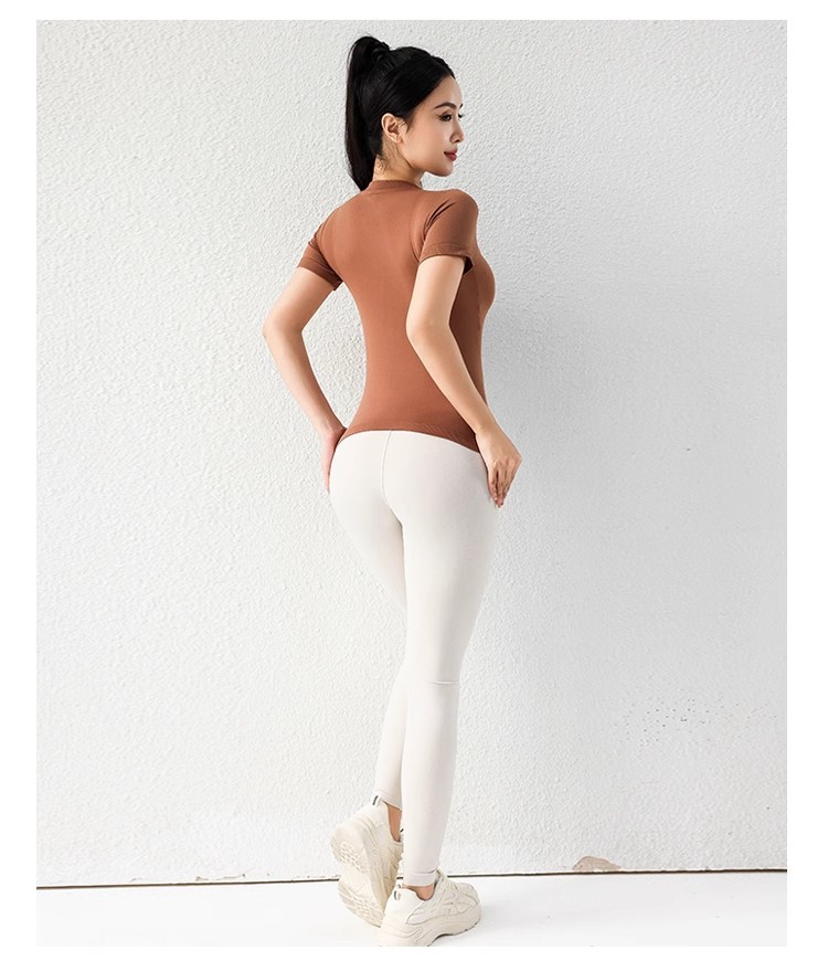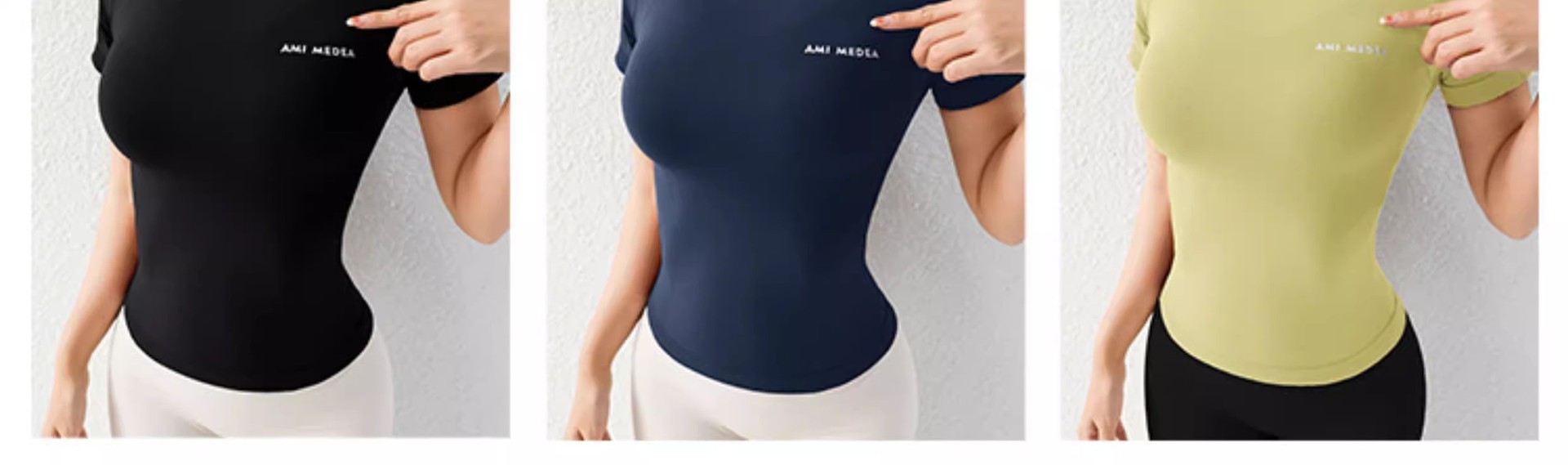 AMI MEDEA 스포츠 반팔 꽉 끼는 달리기 원활한 피트니스 세트 티셔츠 짧은 솔리드 컬러 요가 세트 여성용 탑스토어 가기
